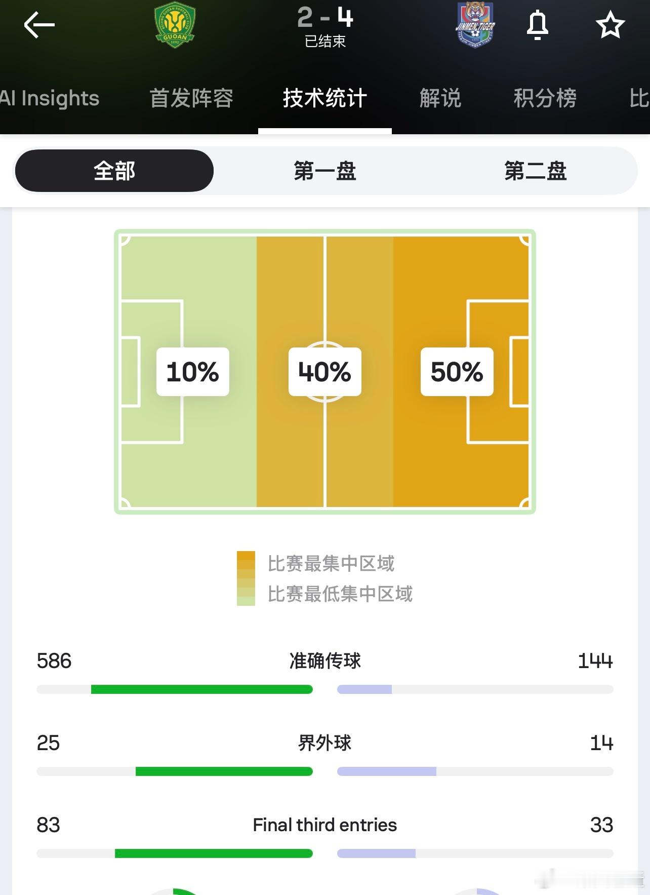 24%的控球率,攻进进攻三区只有33次,在对方禁区内触球只有12次。