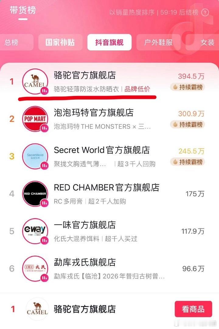 迪丽热巴工作室 王亚飞 直接带品牌登顶户外鞋服榜和抖旗舰榜双TOP了,女顶流的带