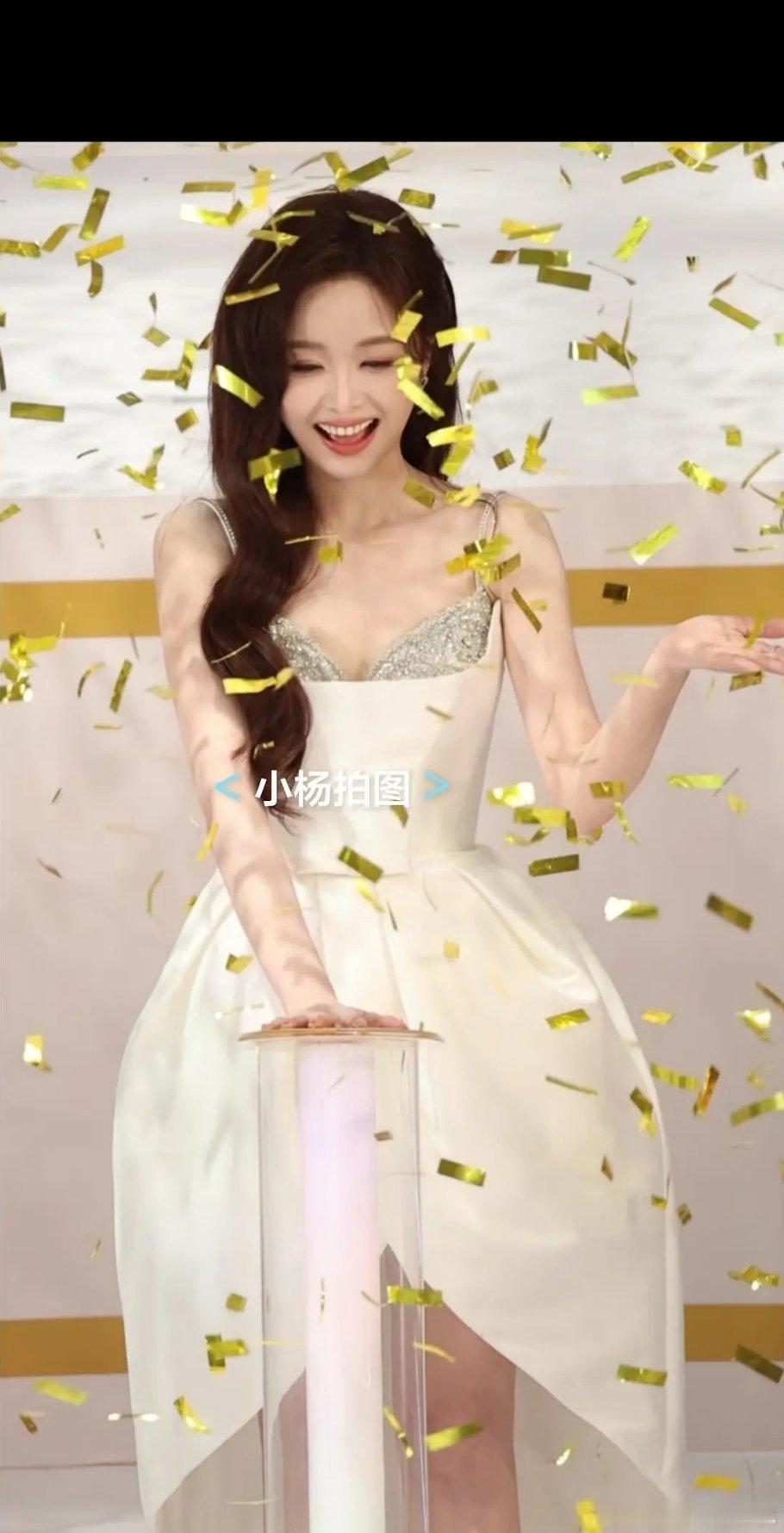 👠吴宣仪金色彩带雨中的吴宣仪