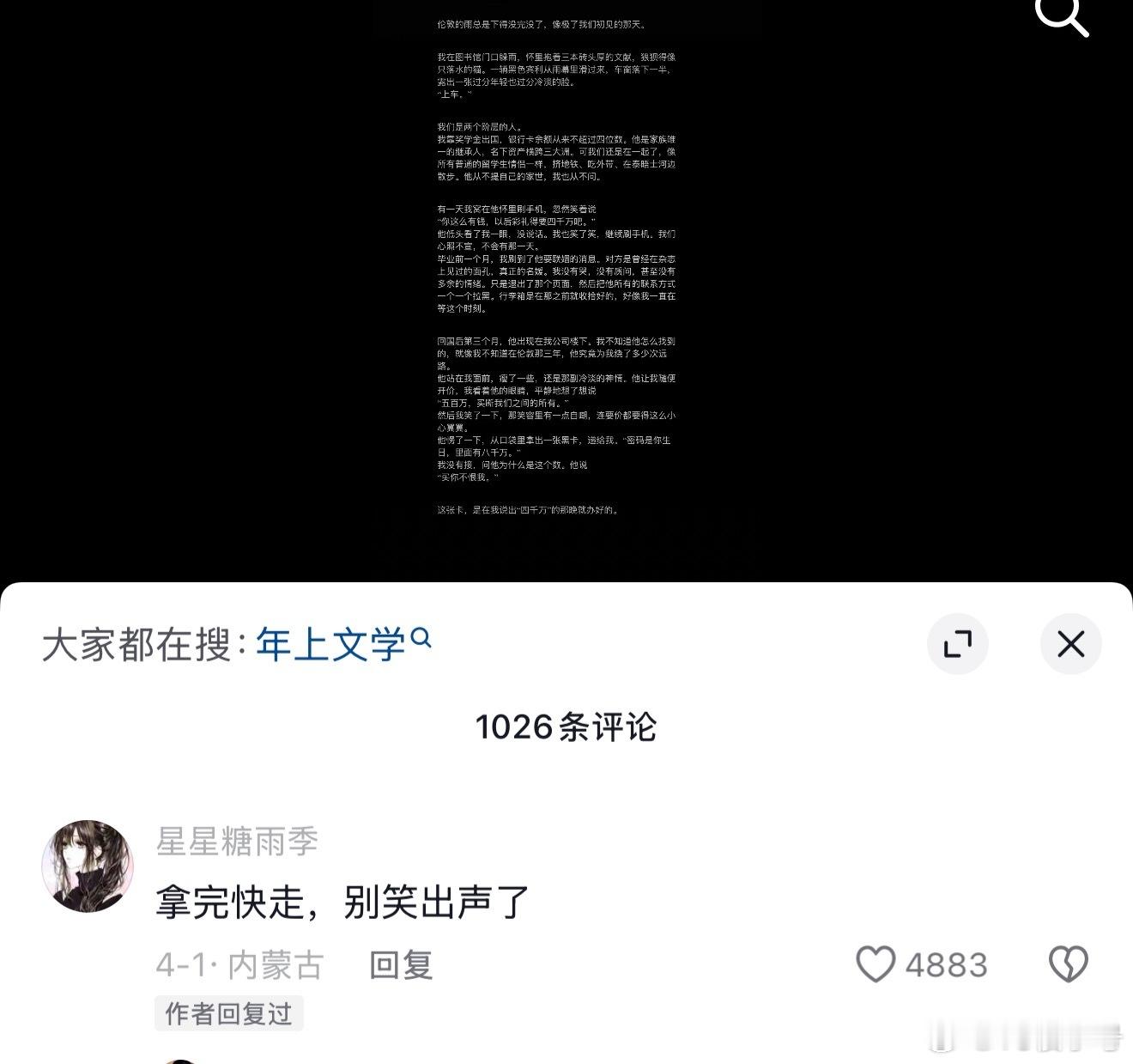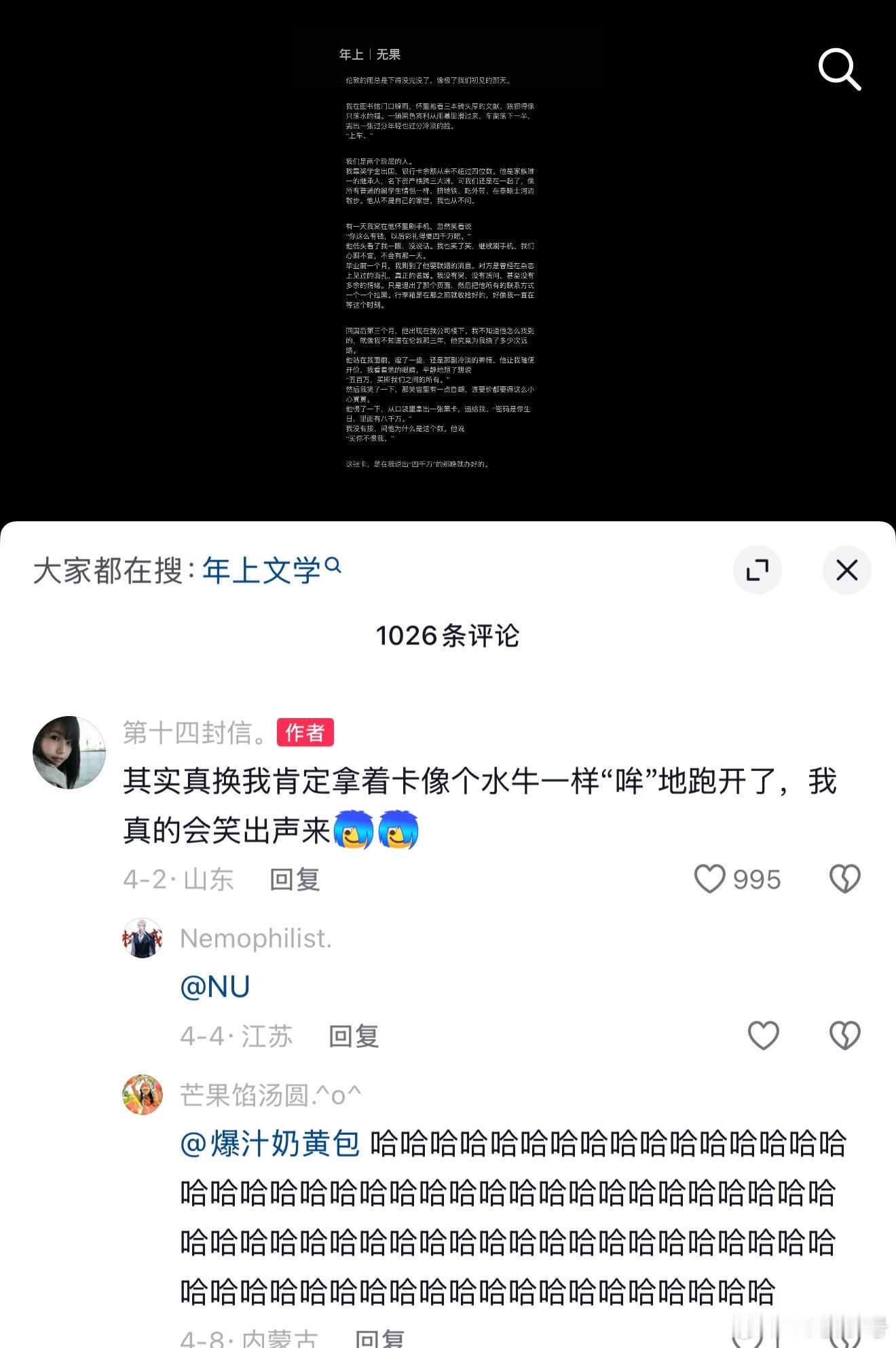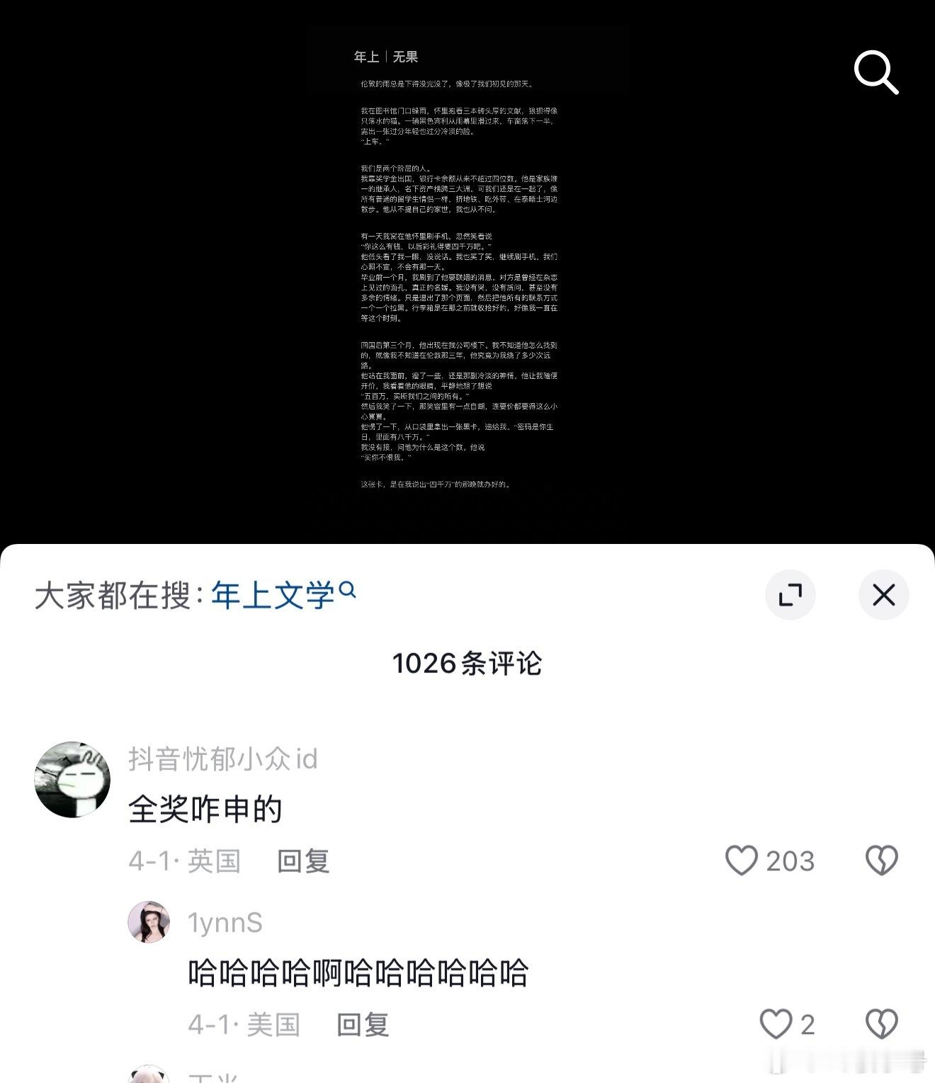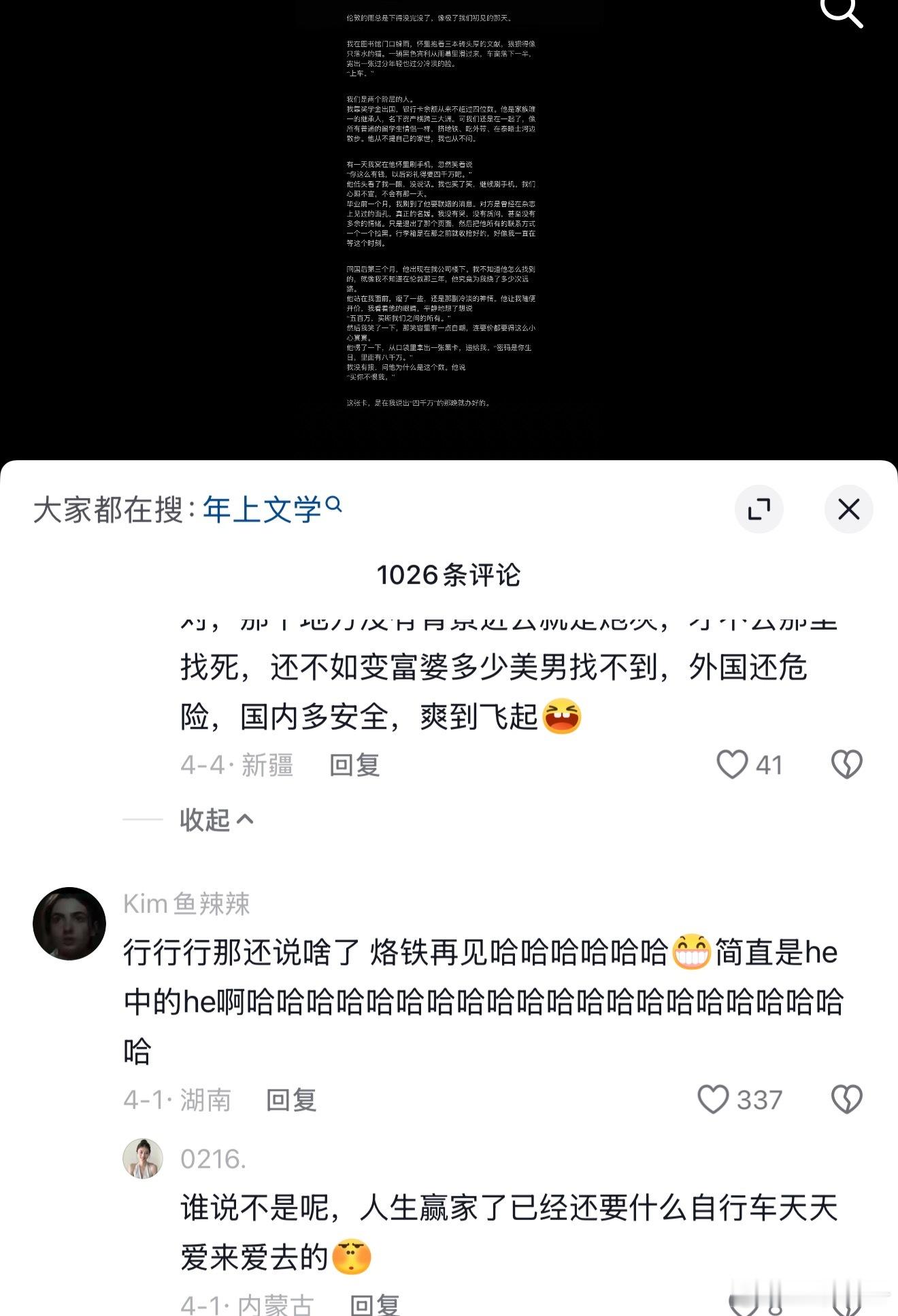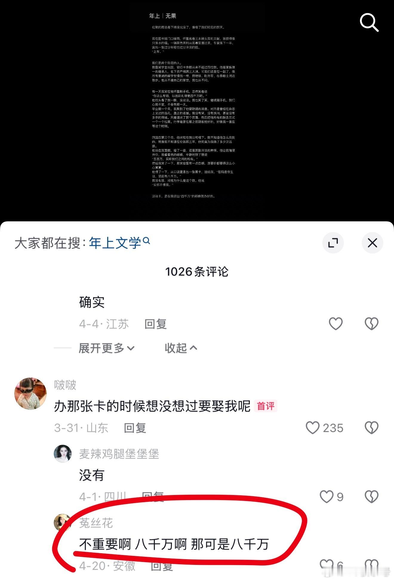 评论区完全没有BE的难过全是对八千万的渴求,还有唯一一位对全奖怎么申请的疑问