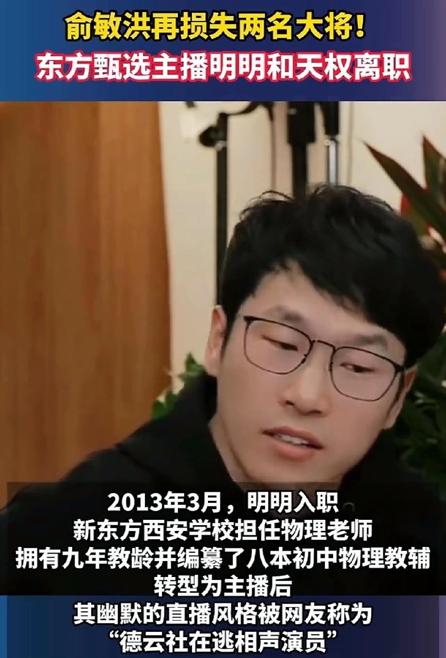 东方甄选又走了两员大将,明明和天权离职了,说是不适应新的管理层和管理理念,马云说