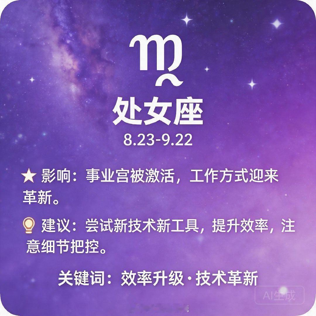 ♍ 处女座:事业宫被激活,工作方式迎来革新。尝试新技术、新工具提升效率,但需注意细节把控。