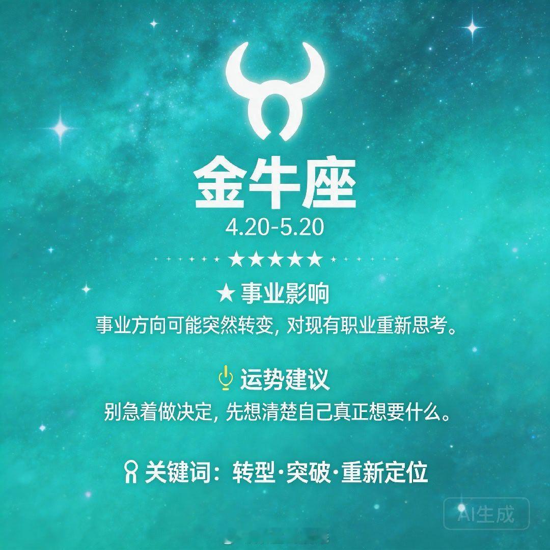 ♉ 金牛座:事业方向可能突然转变,对现有职业产生重新思考。别急着做决定,先花时间想清楚自己真正想要什么。