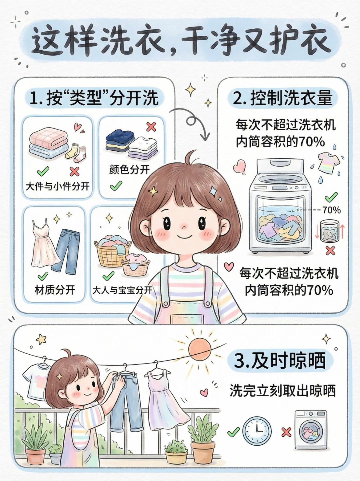 建议大家衣服不要攒一起洗 大批衣物攒一起洗,很难嚷洗衣液充分接触到衣物,容易清洗