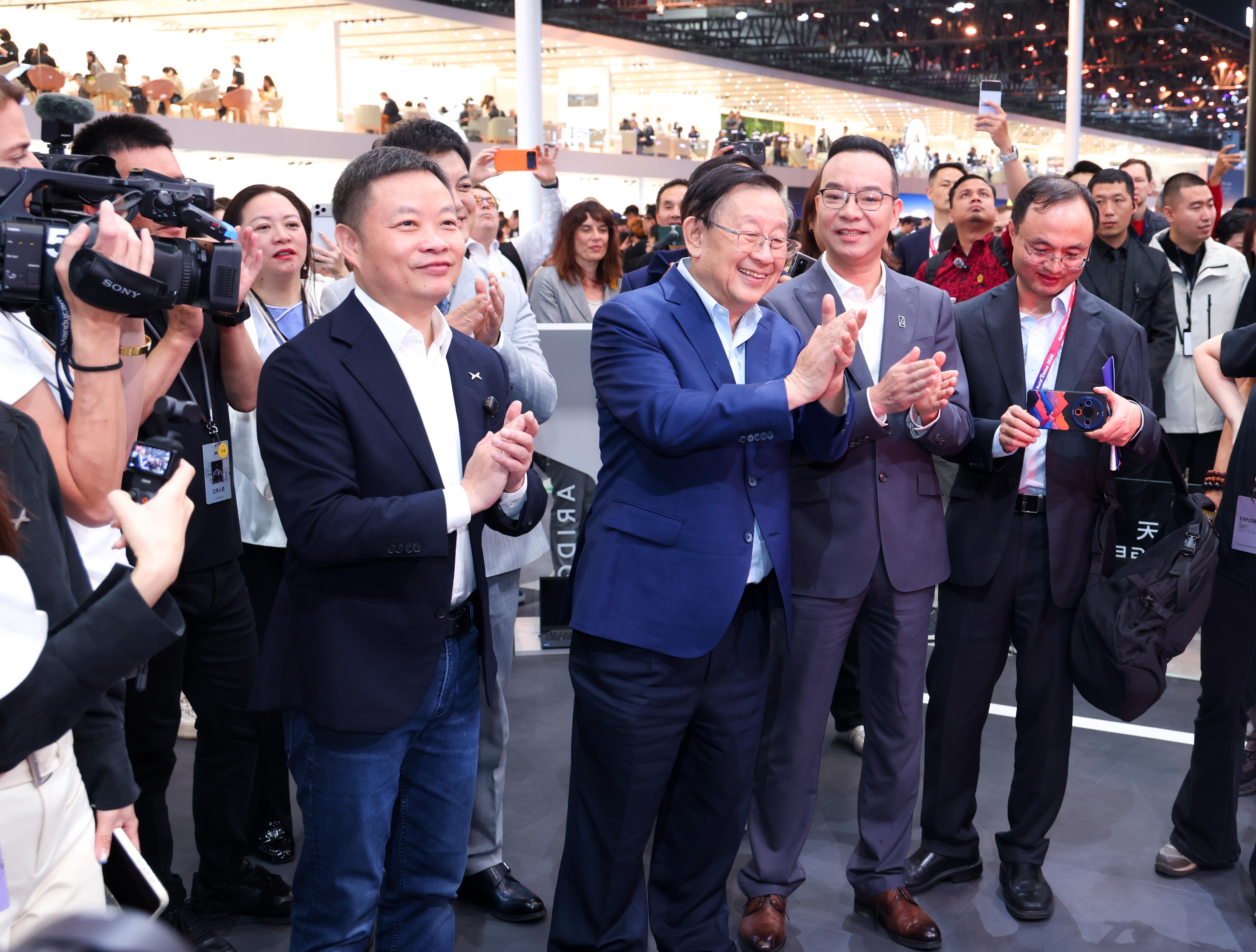 这次车展上,中国科协主席万钢参观了小鹏集团展台。参观到小鹏汇天陆地航母的时候,和何小鹏一起蹲下来查看自动折叠的机构。不管到了什么年龄,机械对于男人都有无尽的吸引力。