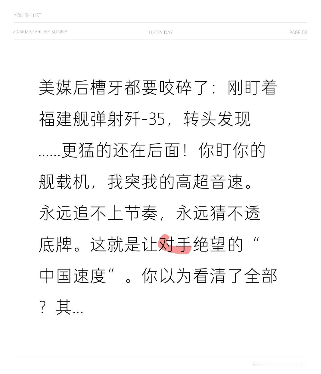 你盯你的舰载机,我突我的高超音速。永远追不上节奏,永远猜不透底牌。这就是让对手绝望的“中国速度”。