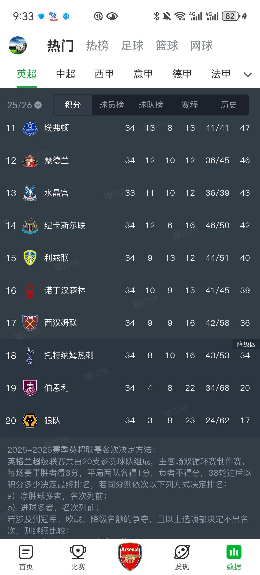 最刺激是欧联和欧协联资格,第六名到第十二名只差四分,还有欧战机会的球队非常多!