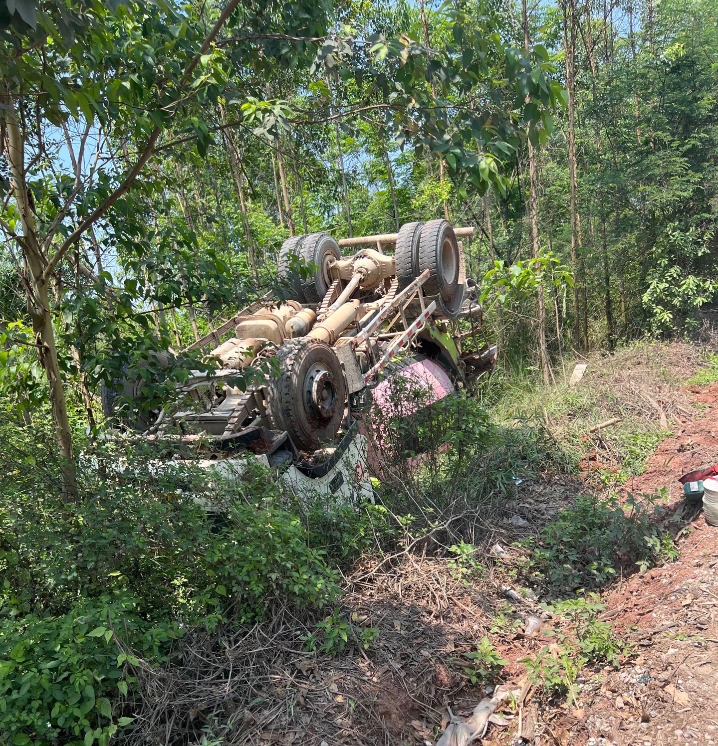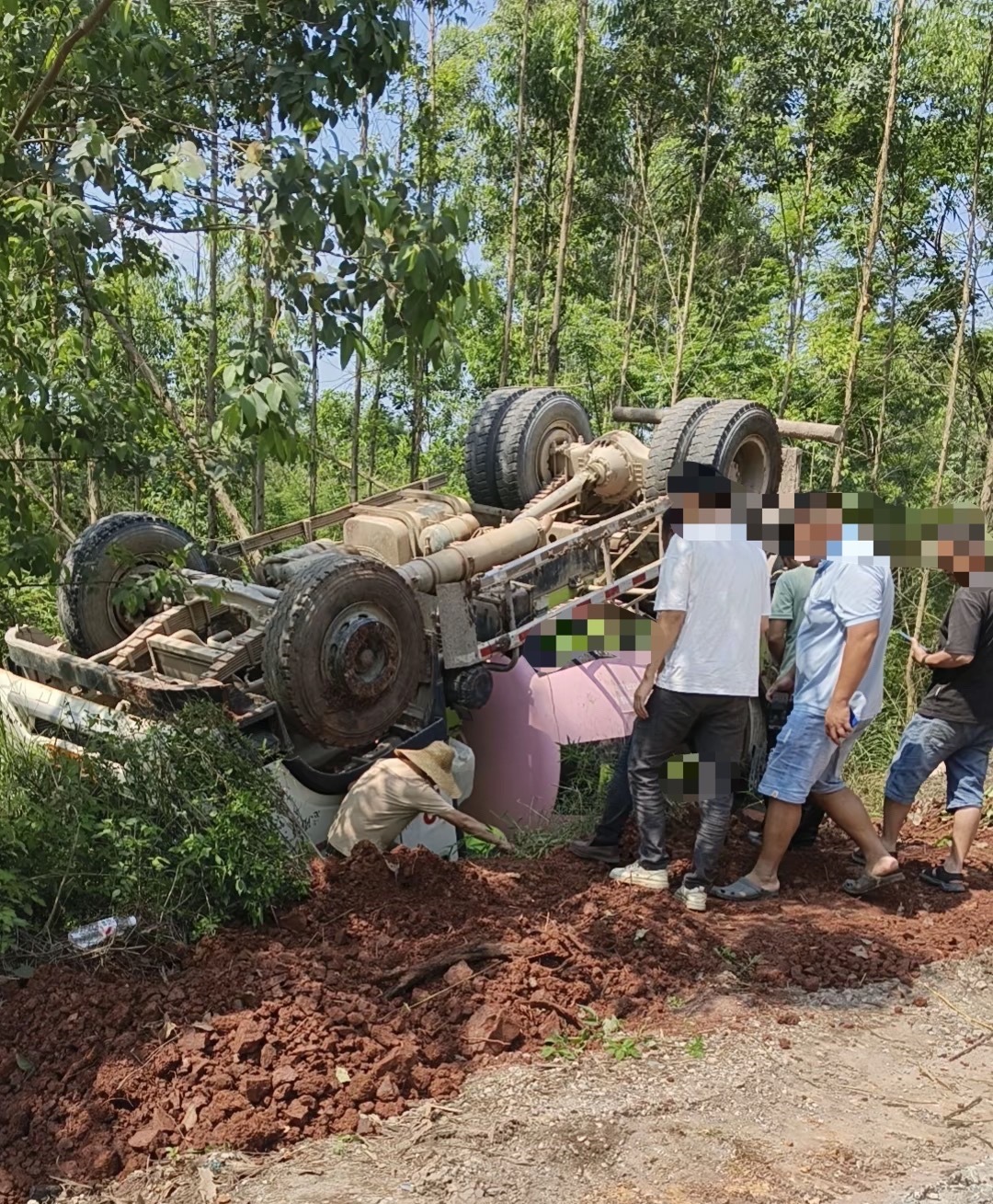 【钦州下某江一搅拌车翻车朝天在路边】