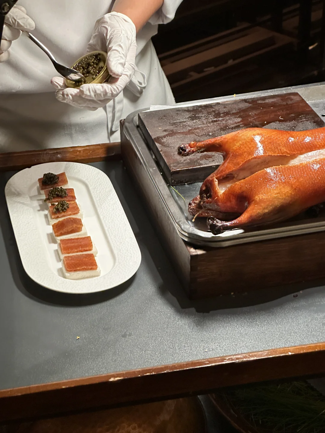 鱼子酱片皮桂花烤鸭是每次来都要点的,鸭皮酥脆不油腻