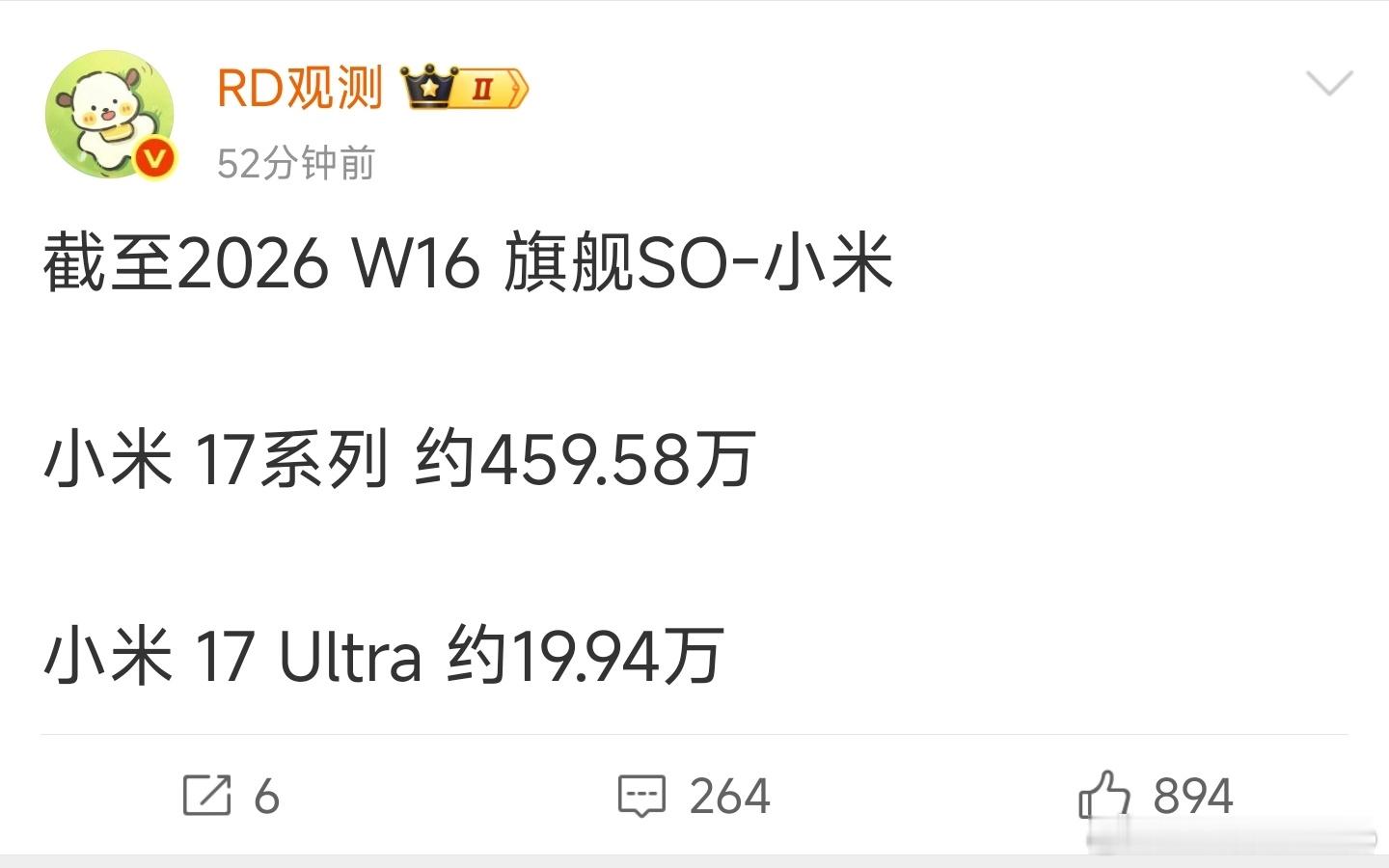 W16周,小米17系列增量7.03万;vivo X300系列增量6.84万;OPPO Find X9系列增量2.96万。小米增量依然领先,小米17Max快点出吧;X300系列叠加了X300S和X300Ultra,只有这个增量,和没发布之前差不多;X9系列基本就这样了,等X9Ultra和X9S系列这周的数据吧。今年没有降价潮,都很难!
