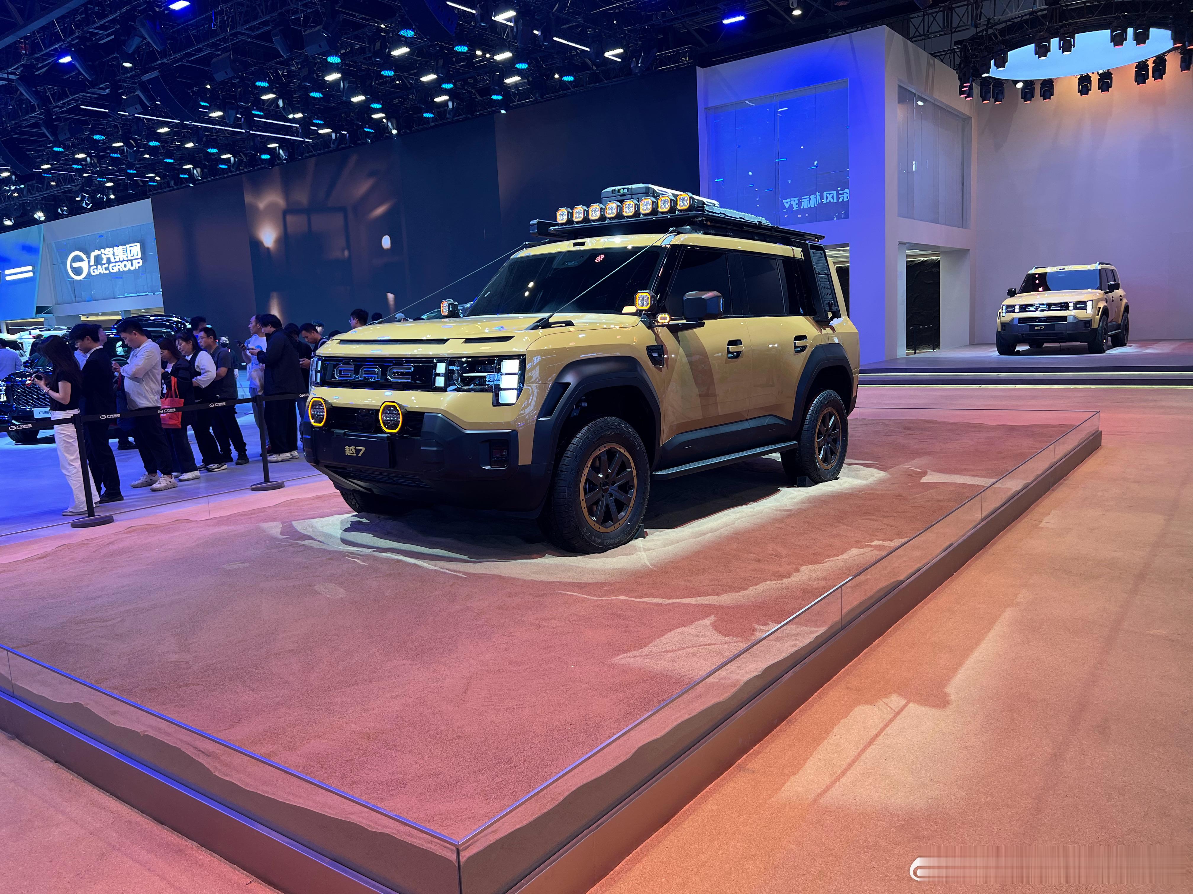 广汽传祺首款硬派越野,越7不是那种纯硬派的设计风格,方方正正的造型下,能看到很多新能源的风格,尾部采用经典侧开式尾门+外挂式备胎车顶有激光雷达,估计是华为的智驾,动力上是2.0T插混目前的信息还很少,预计在三季度才上市