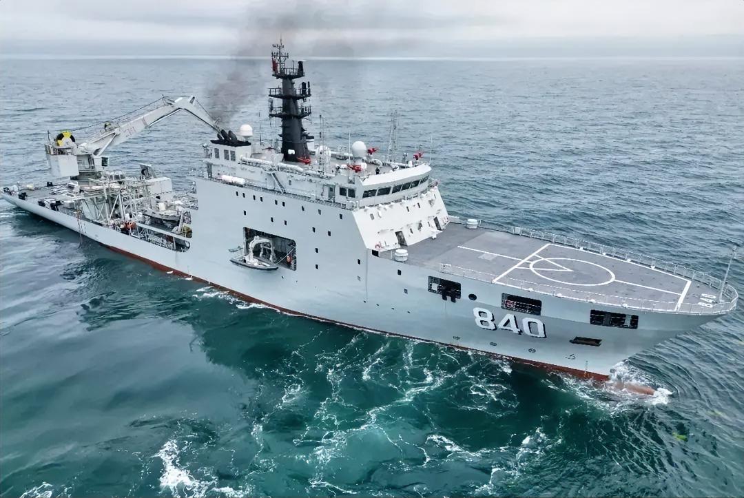 这是海军的明镜湖船,舷号840,是中国海军现役的927型新型打捞救生船,也叫潜艇支援舰,2025年正式入列,满载排水量比052D还要大,达到了9000吨左右,作为我国海军远海深海救援保障体系的新锐装备,主要承担大深度打捞、援潜救生、海上应急救援等任务。