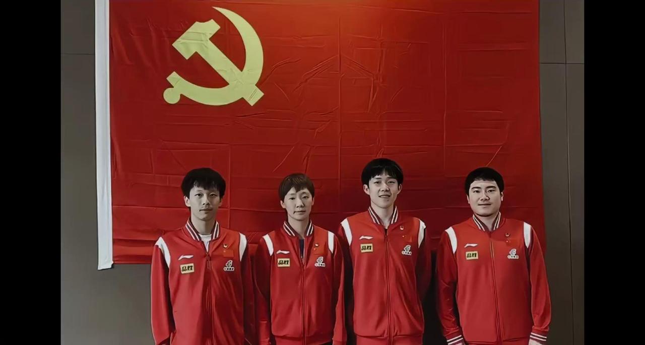 原来他们四个一起入的党,当时王楚钦最小,时间真快,已经独挡一面了! 小林将军、王曼昱、大胖,头哥的特别合照,红红的才是可贵可喜可贺! 实际上第一次见这张照片,只感觉很优秀,他们都在自己的事业上闪闪发光,努力的脚步不停歇,继续下一程!