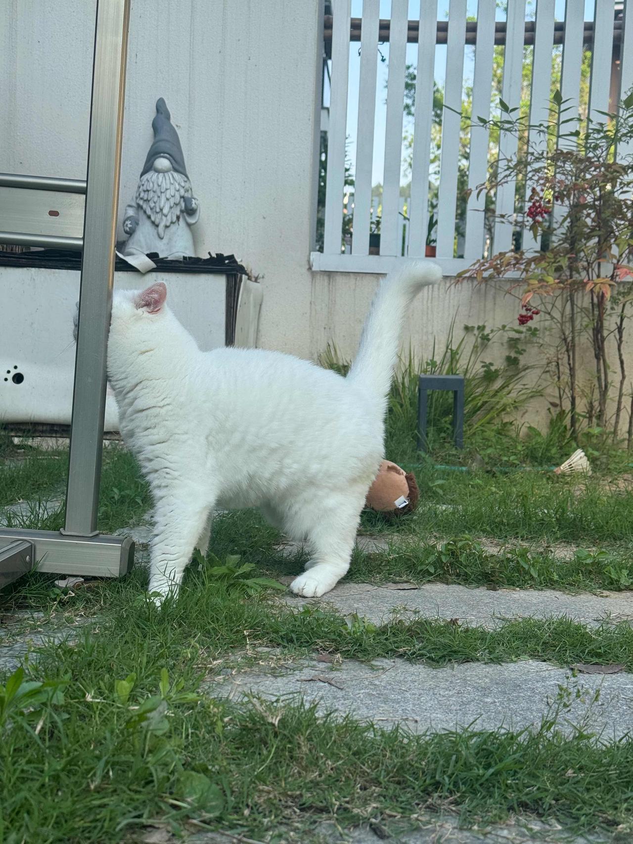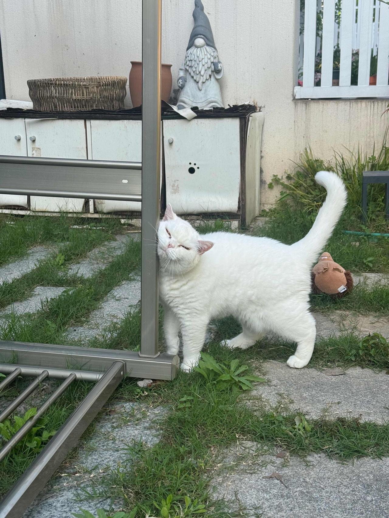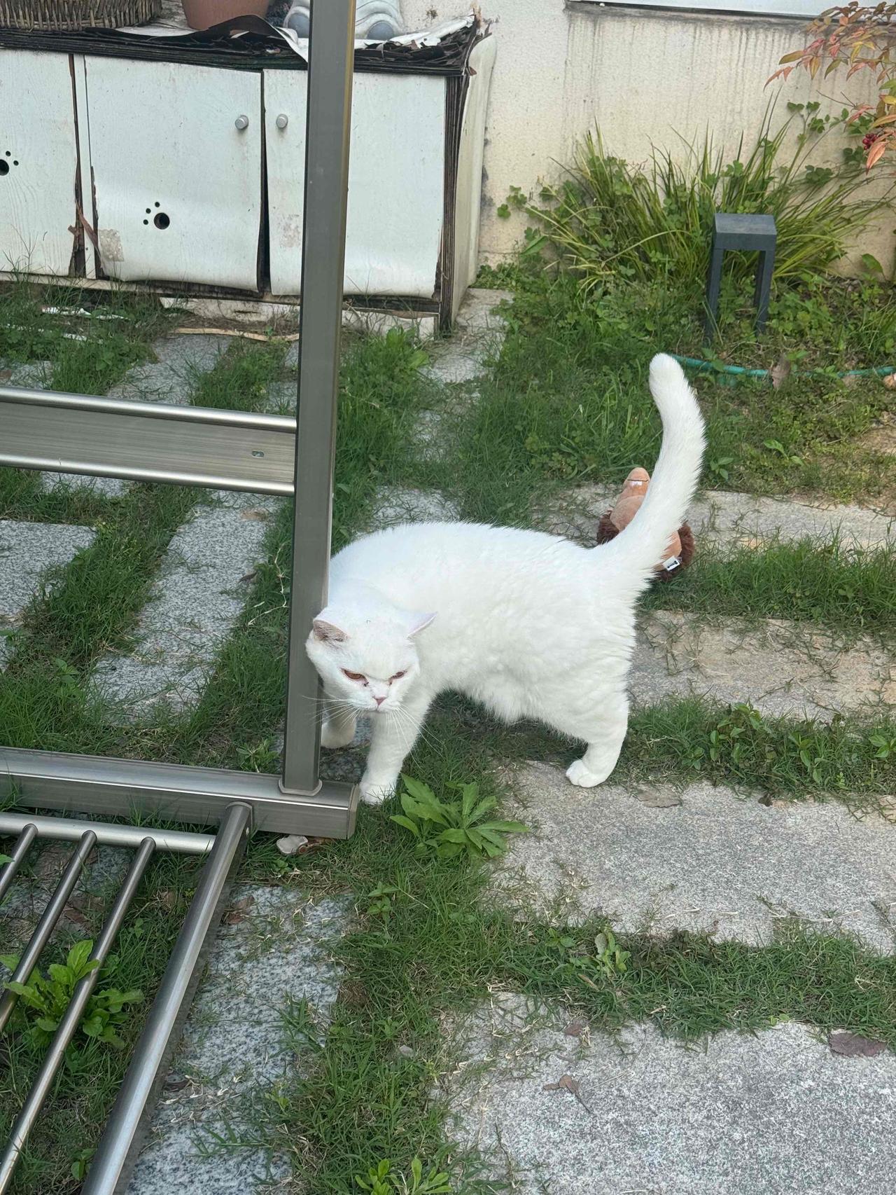 这又是谁家丢弃在外的流浪猫,竟然在墙角的夹缝当中寻找着能够让自己填饱肚子的食物!