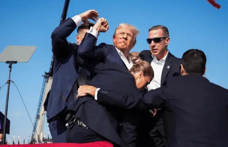 二,2024年7月13日,滨州竞选,枪击致特朗普右耳中弹。