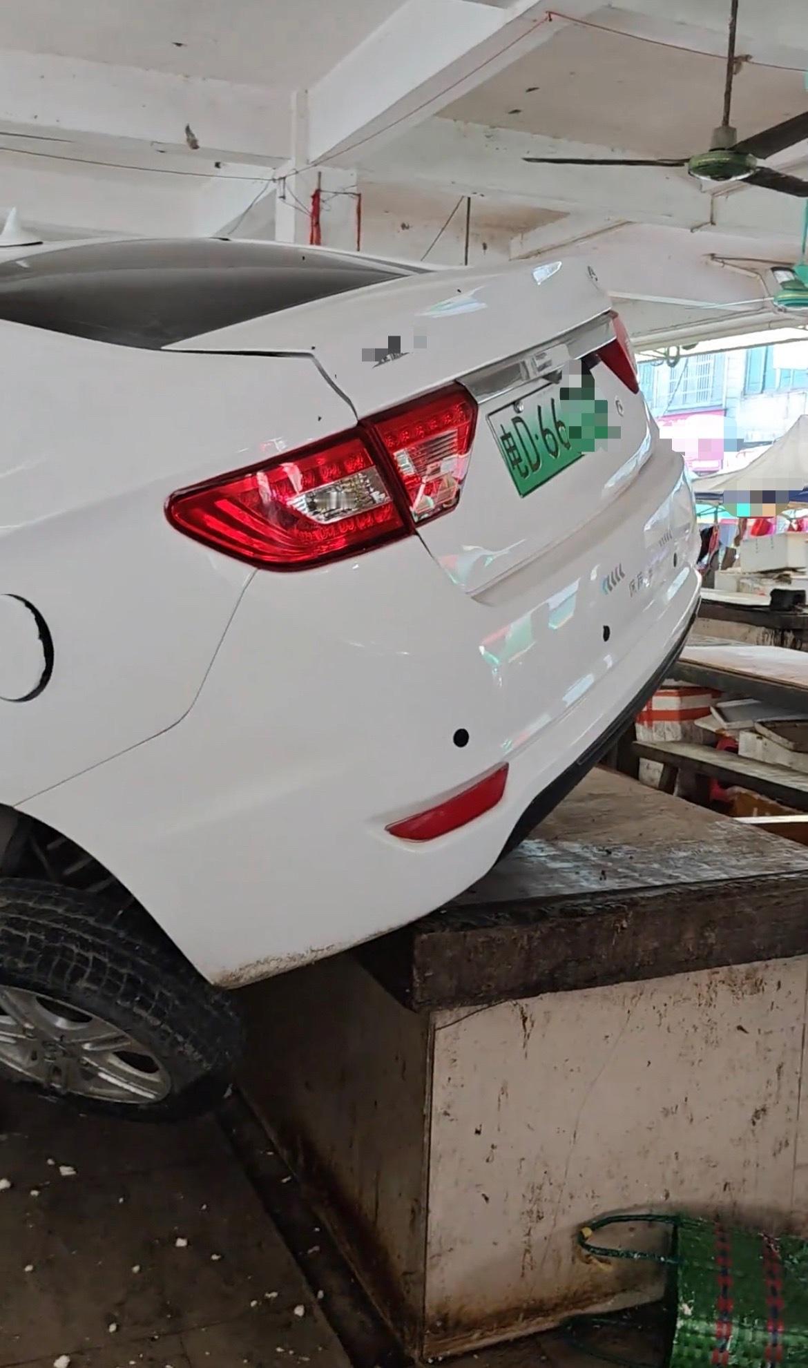 4月26日,广西贵港一辆白色的新能源小轿车冲进猪肉行里面去,车辆受损有些严重。车牌还是“电D66”这种车辆能上路行驶吗?