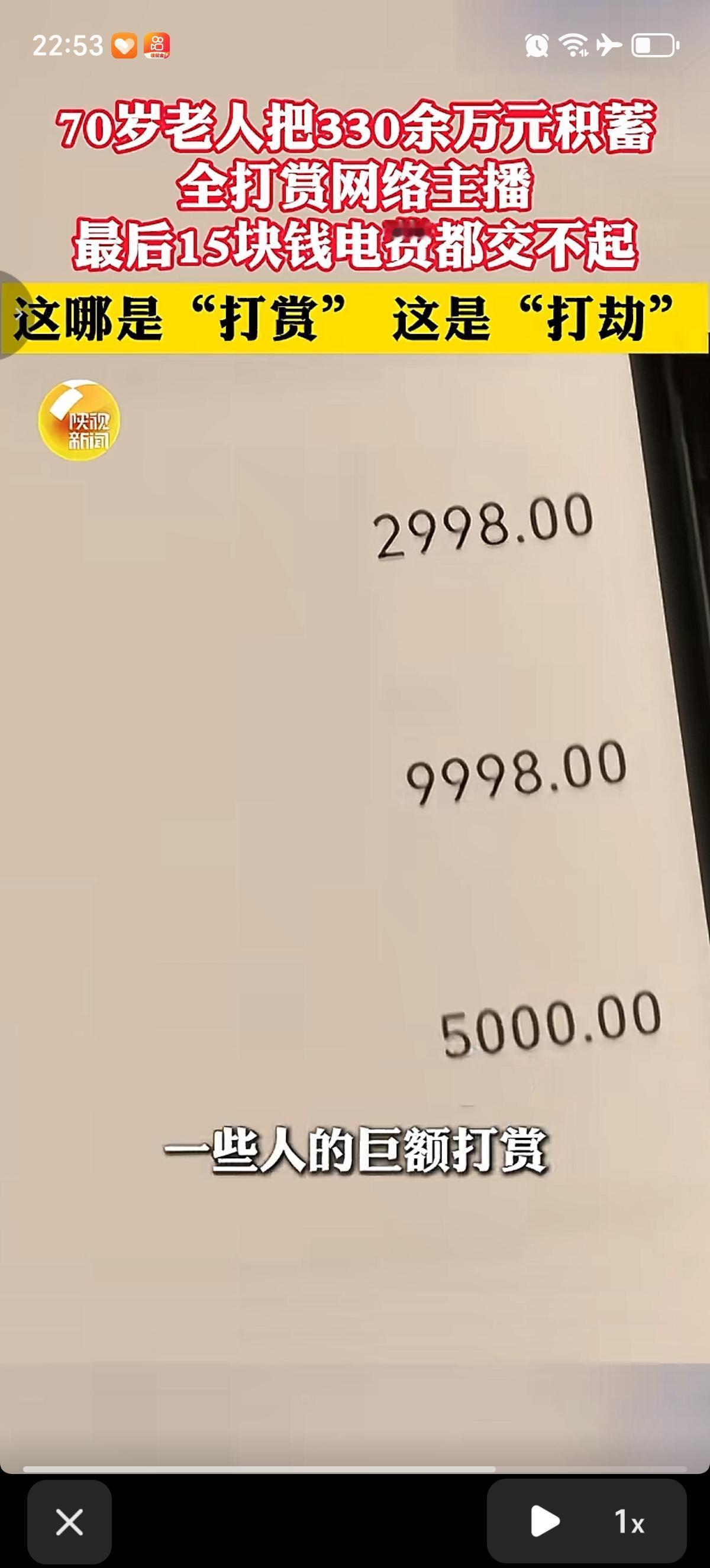 上海有个70岁的江阿婆,平时省吃俭用,连水电费都要算计着交,结果迷上直播后,半年就把家里330多万积蓄全打赏给了主播。