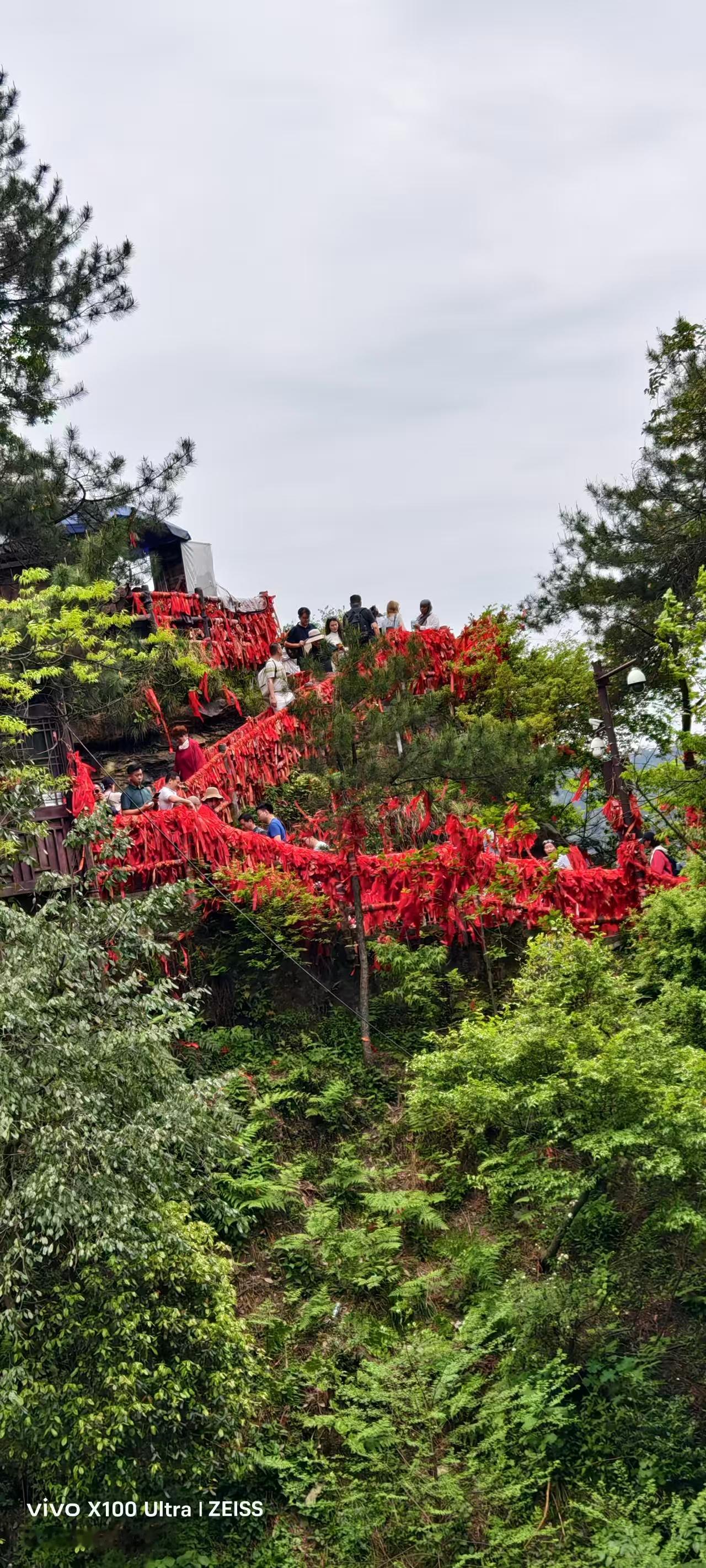 桥上可行人,苍松挺拔、古藤垂挂;脚下万丈深渊,云雾蒸腾,惊险震撼