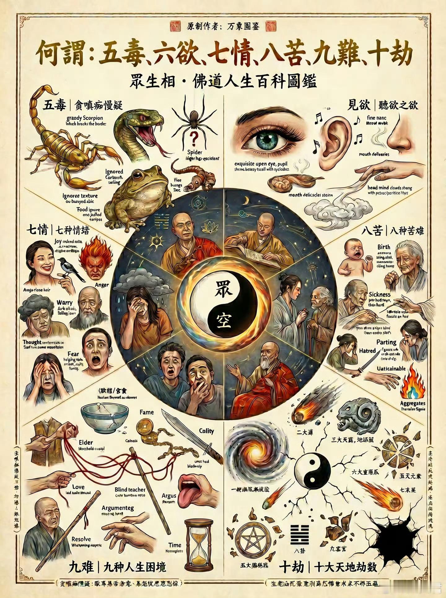 何谓:五毒 六欲 七情 八苦 九难 十劫