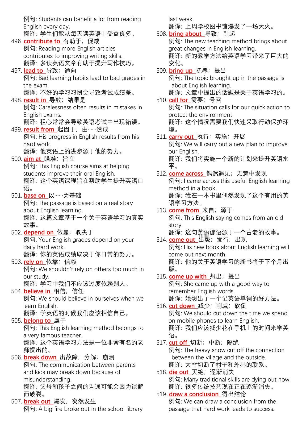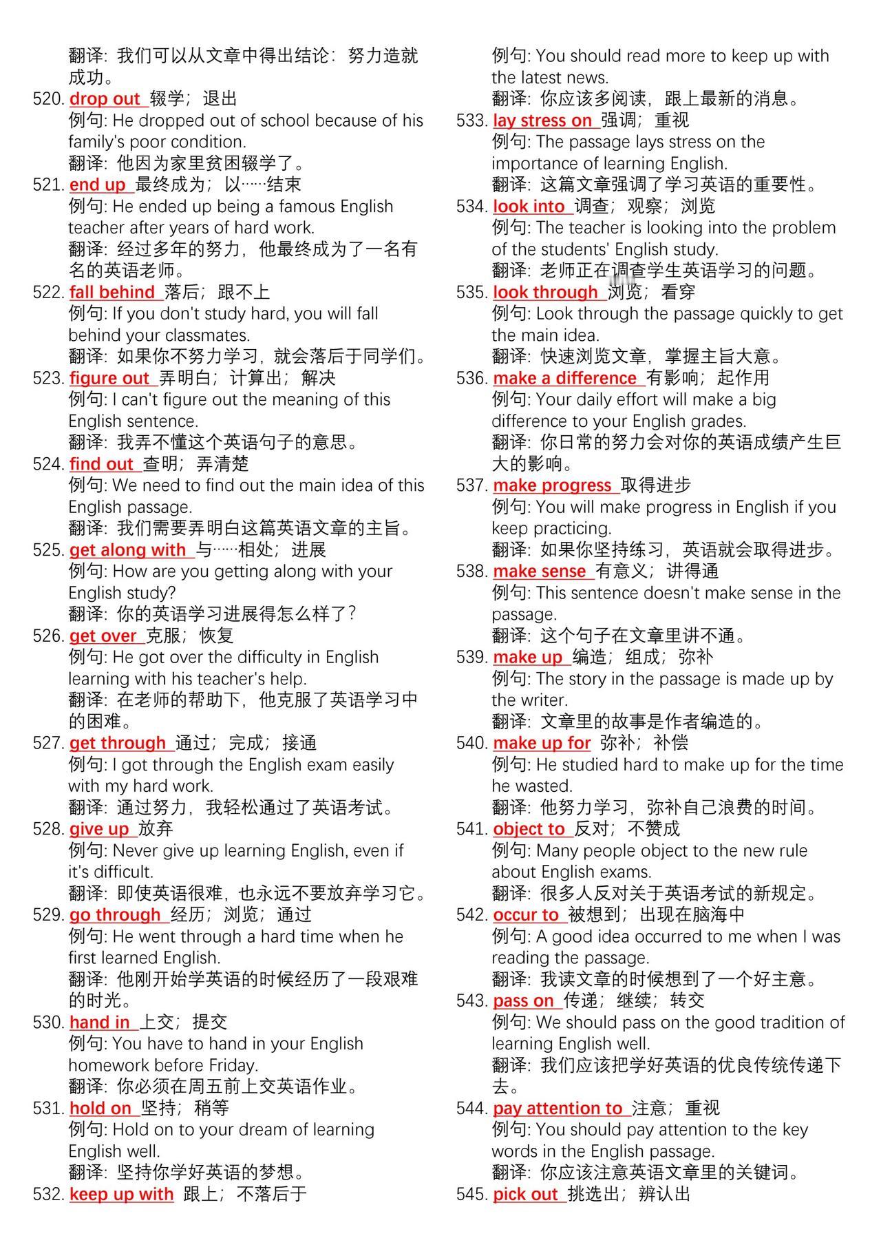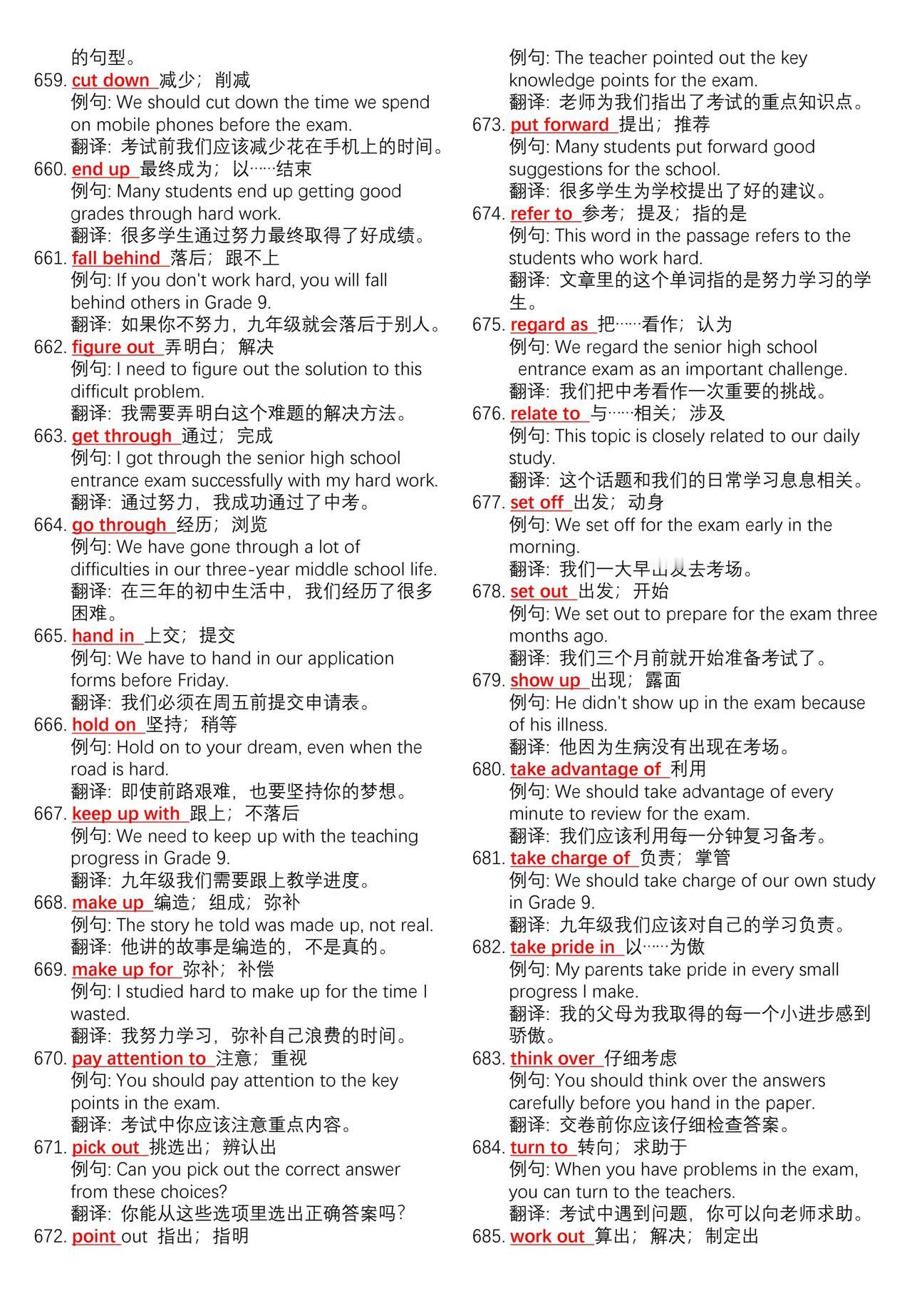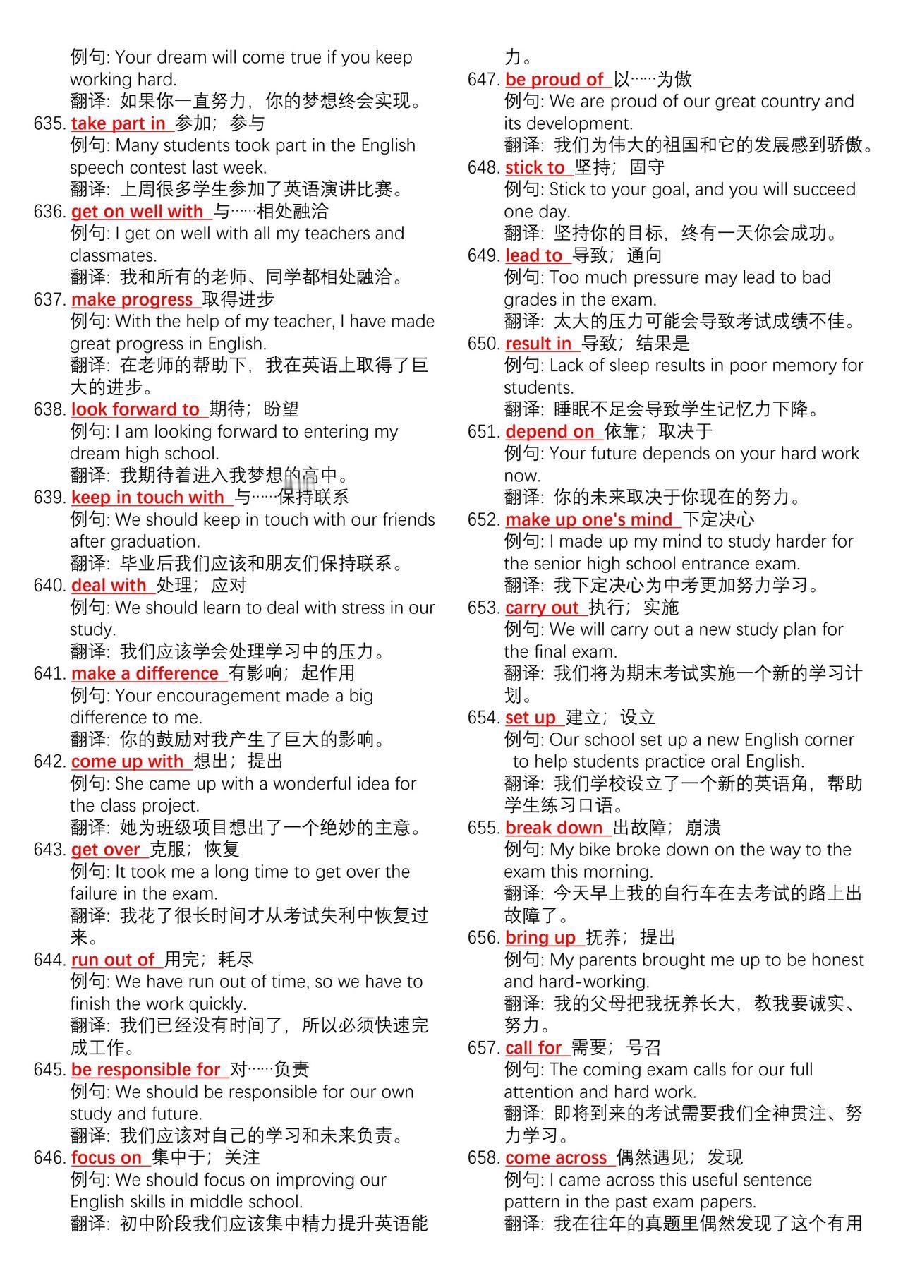 中考英语700组核心动词短语➕例句总结。学好英语最简单高效的方法不是背单词而是背
