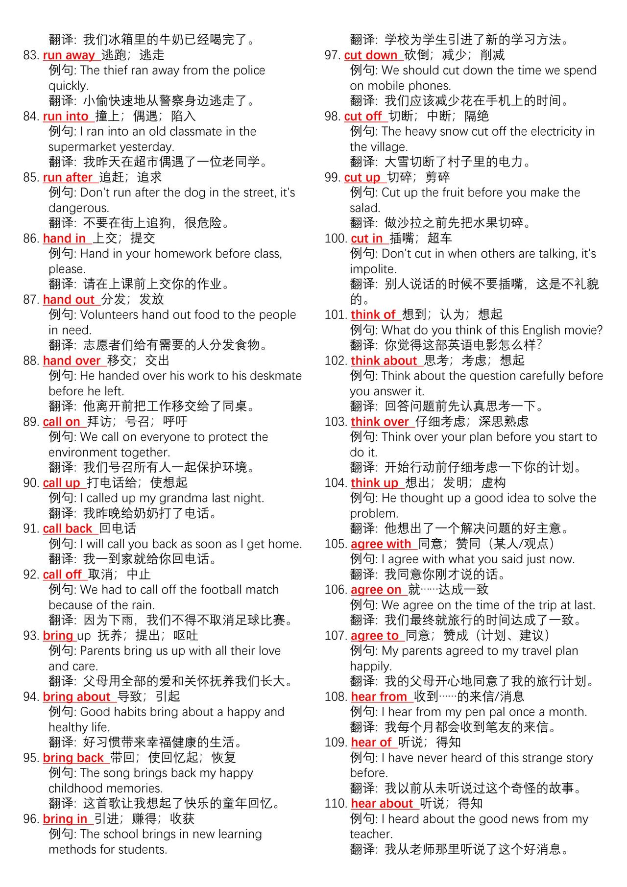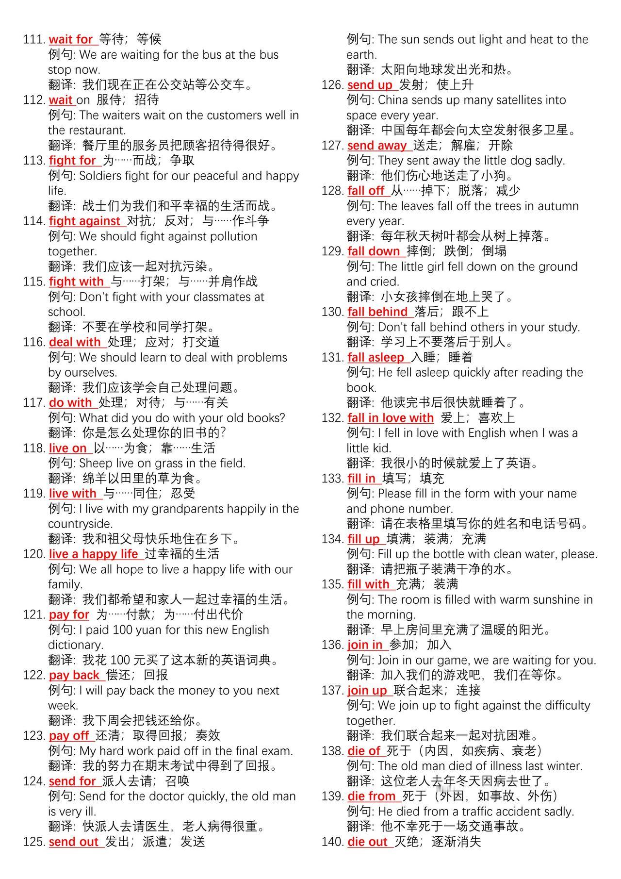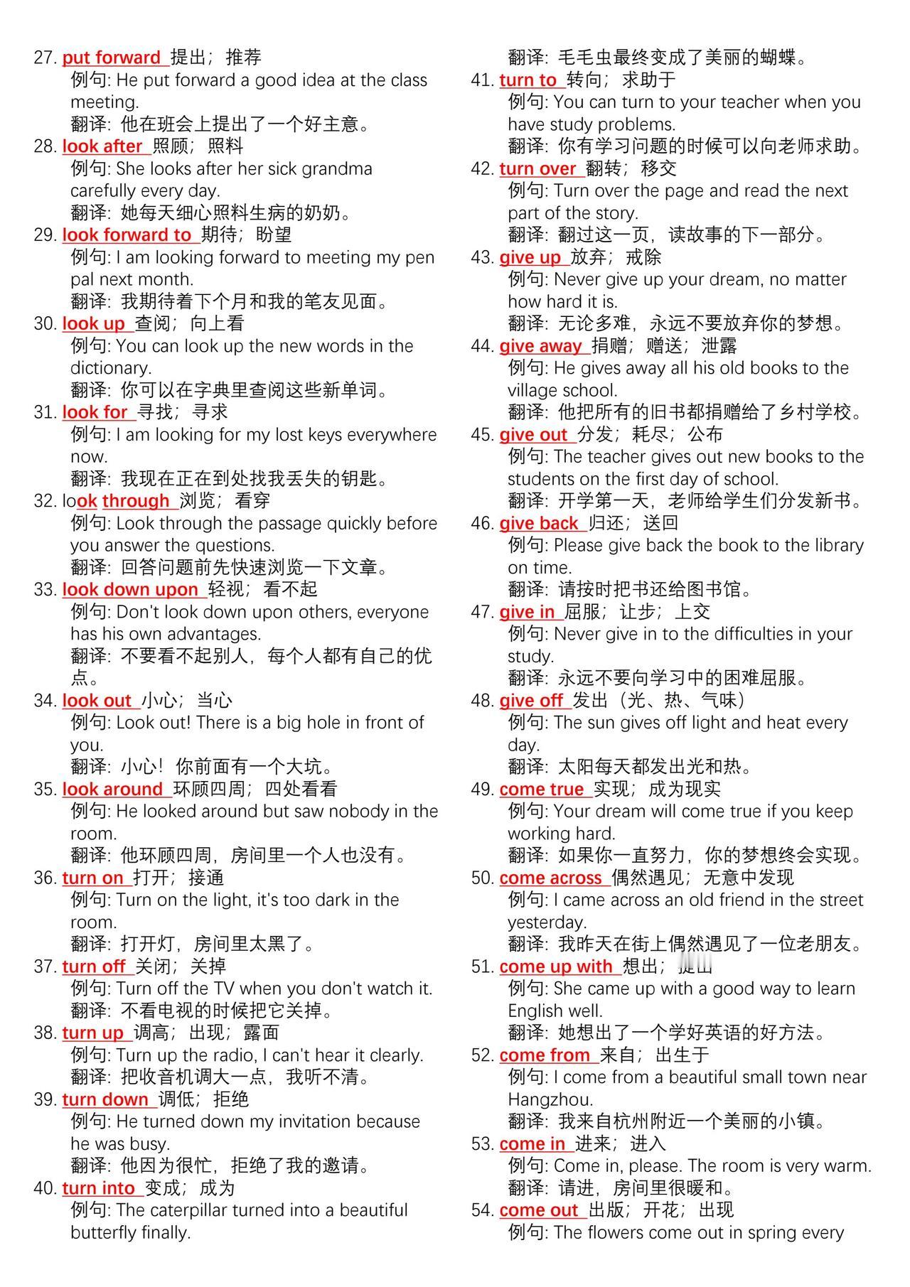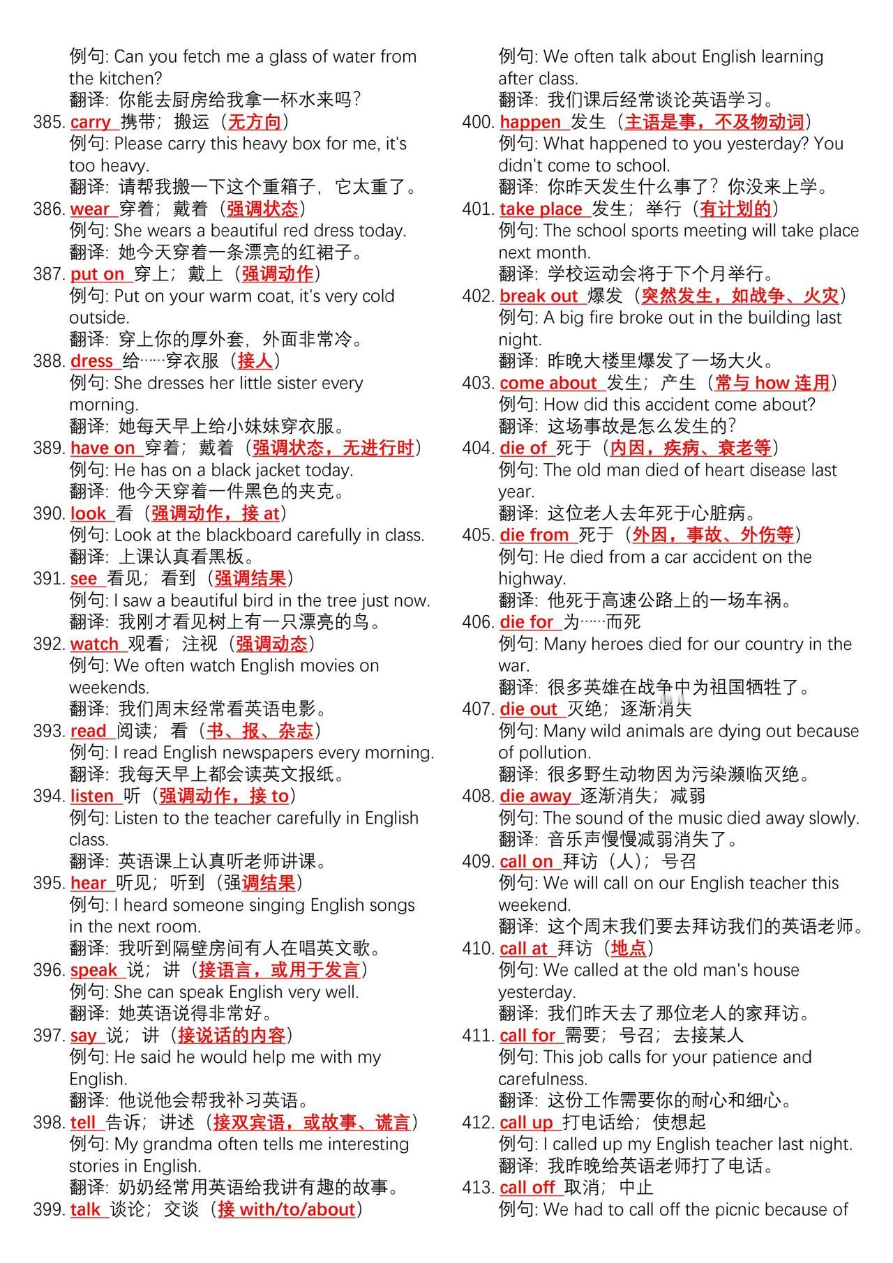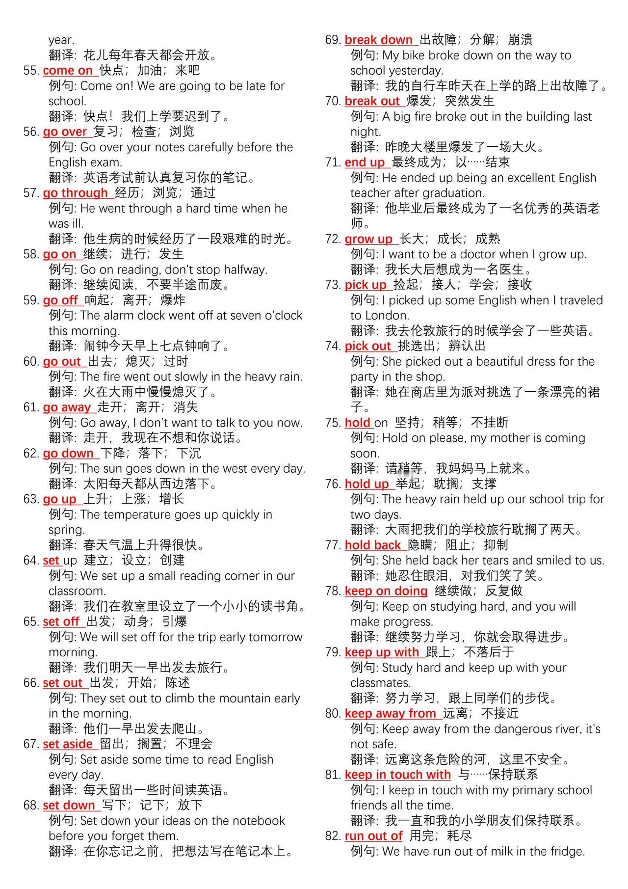 中考英语700组核心动词短语➕例句总结。学好英语最简单高效的方法不是背单词而是背