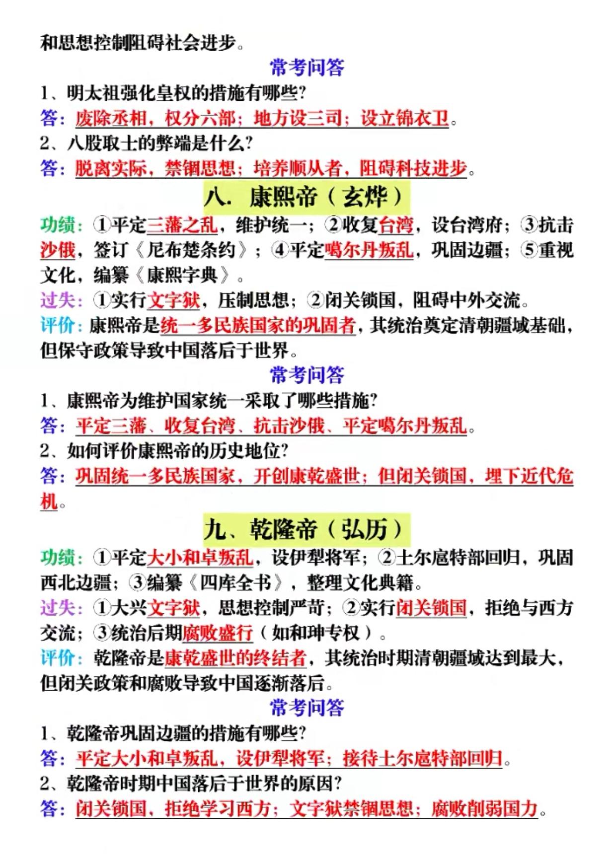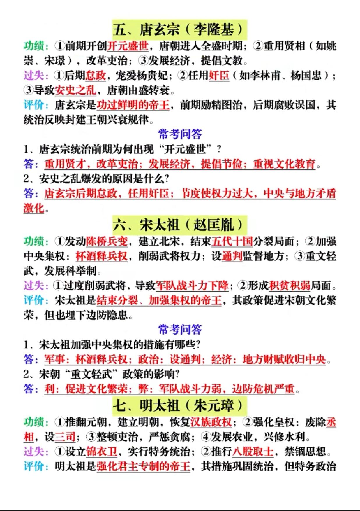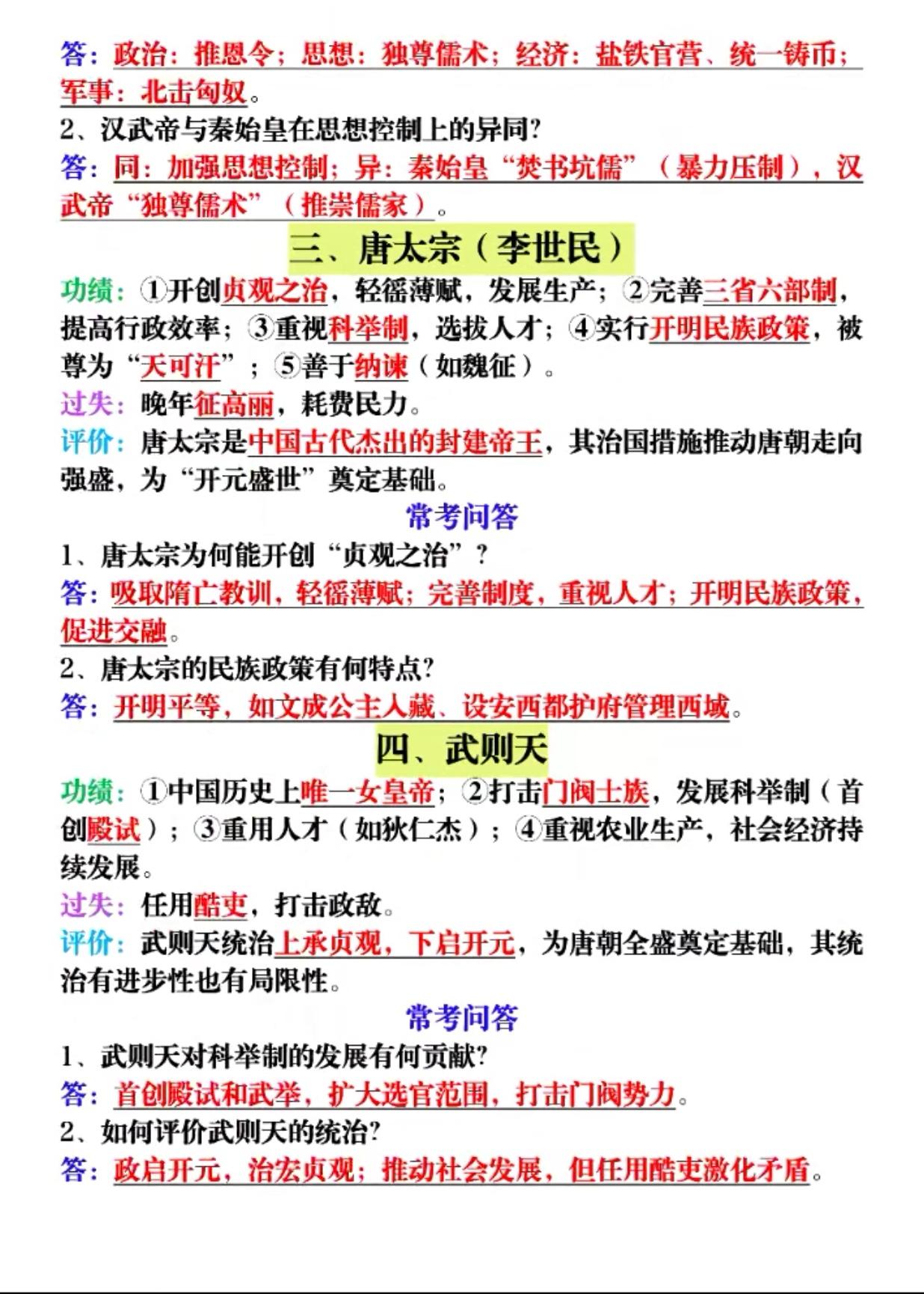 中国历史“帝王”评价题出题率最高的9个