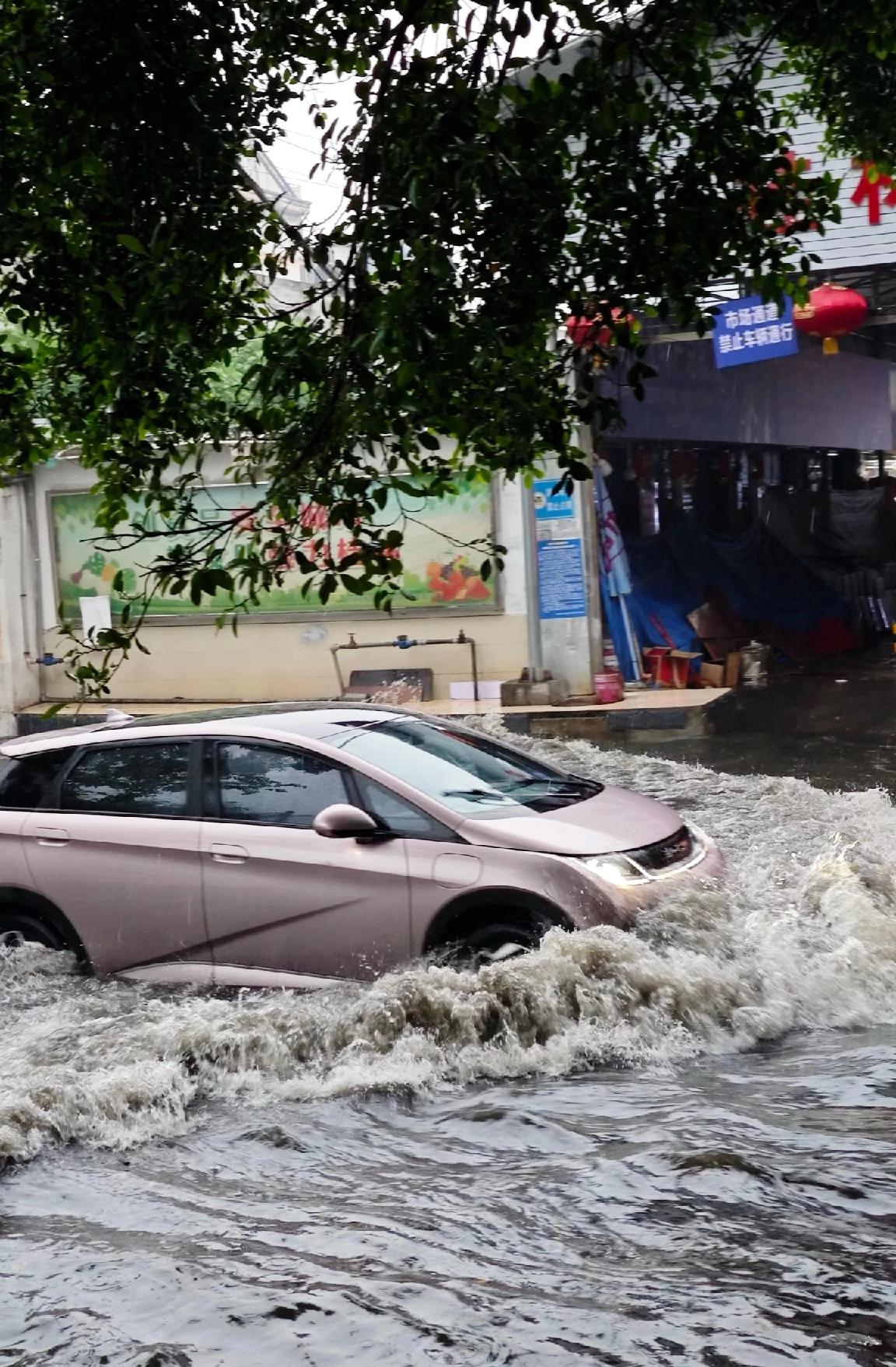 4月27日,广西南部的钦州一带内涝比较严重,街道和车辆被淹。遭遇极强降雨。钦