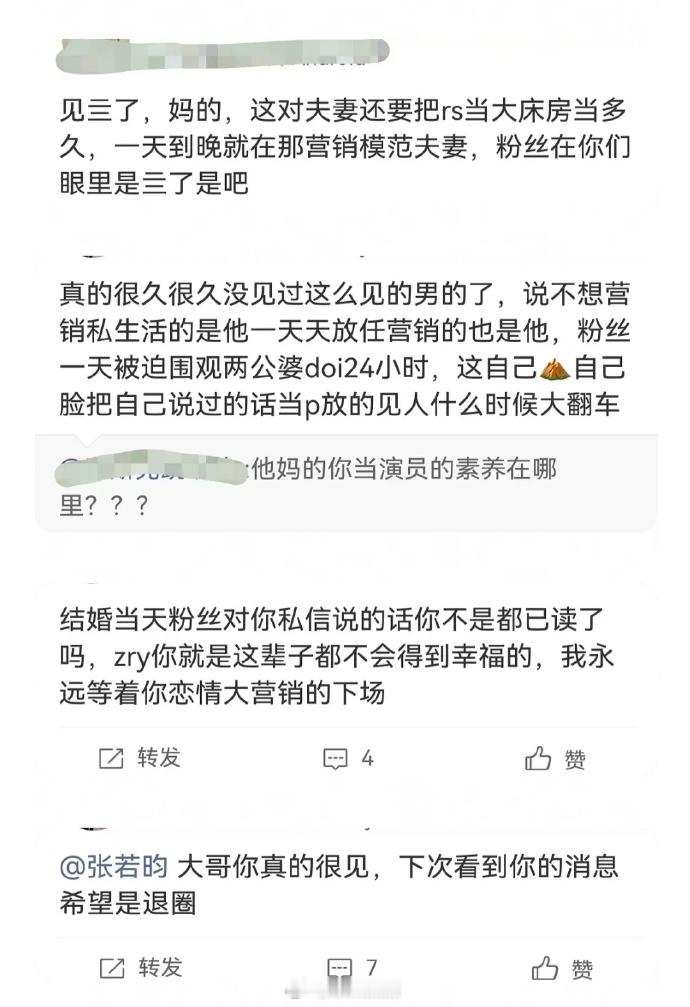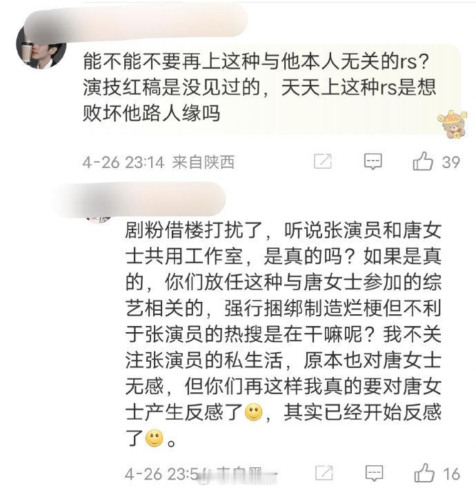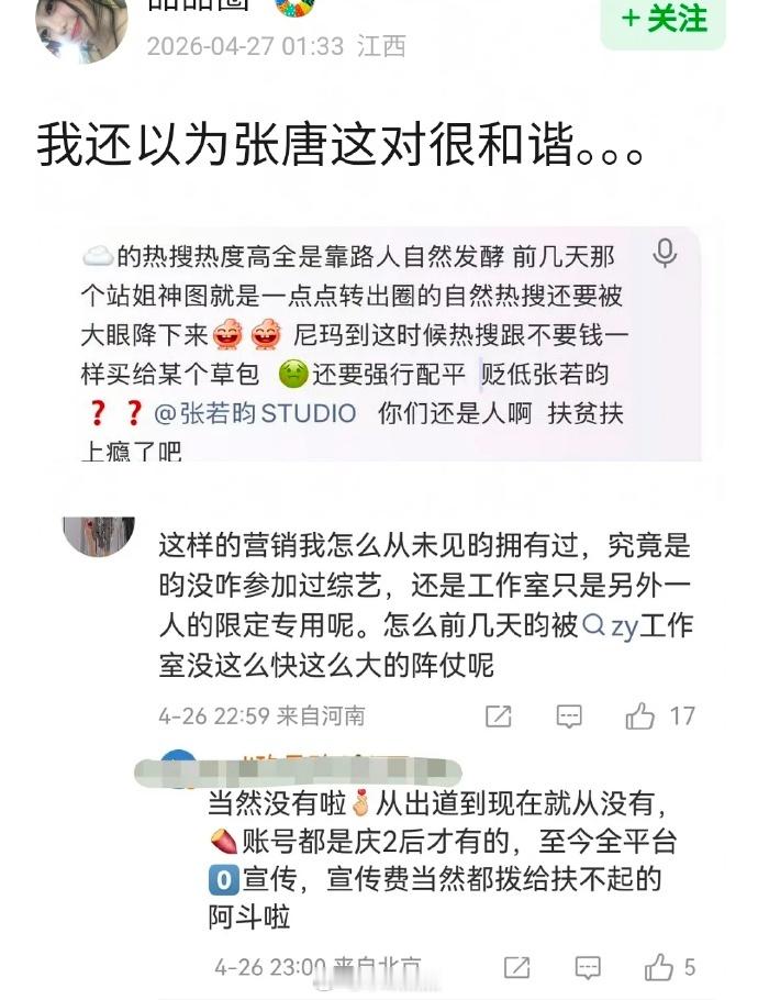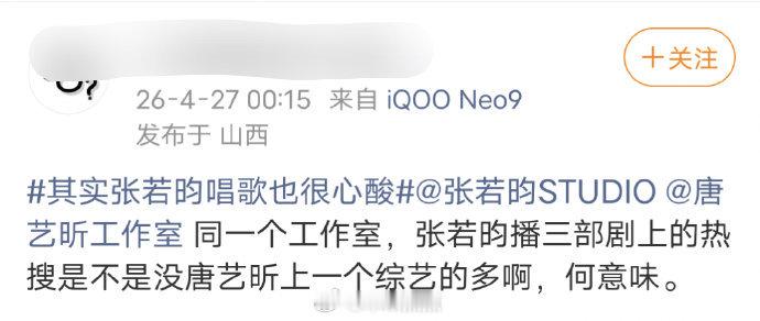 张若昀粉丝 张若昀粉和唐艺昕粉也吵的这么厉害吗? 最近频繁上双人热搜,粉丝喊话张若昀,不要让那些被作品和演技吸来的观众寒心…粉丝抱怨张若昀播三部剧上的热搜,也没有唐艺昕上一个综艺的多。粉丝认为自己粉的是演员张若昀,不喜欢私生活刷屏,不希望营销模范夫妻,成为娱乐大众的工具人唐艺昕情商