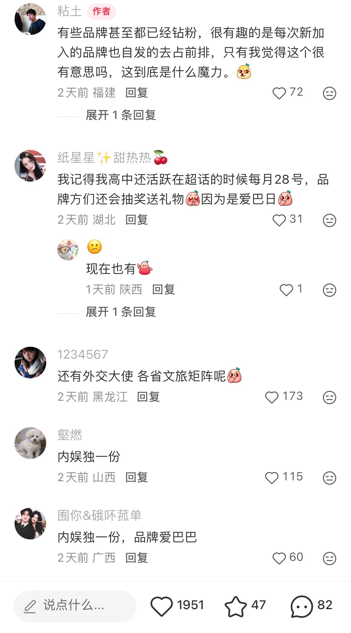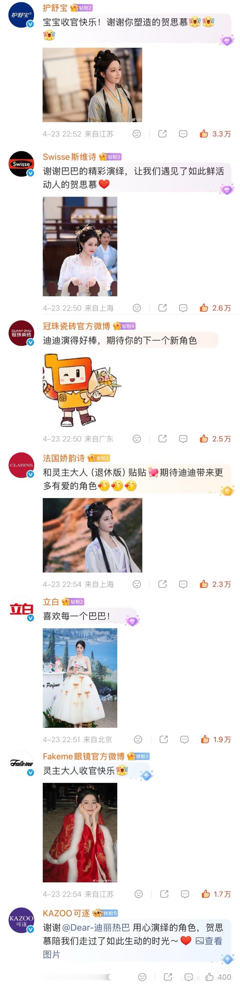 迪丽热巴每次发博评论前排都是品牌方,这也是商业价值的一种体现,内娱只有她是这样,