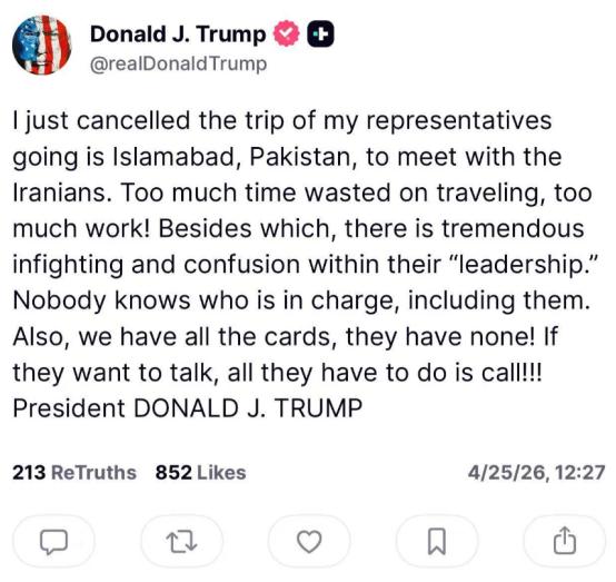 结果阿拉格齐根本不按美方的剧本走。4月25日周六,在美方代表团还没完全落地伊斯兰堡的时候,他直接带着核心团队离开了。这个操作直接打了特朗普团队一个措手不及,美方那些提前铺好的宣传、做好的谈判预案,全成了笑话。