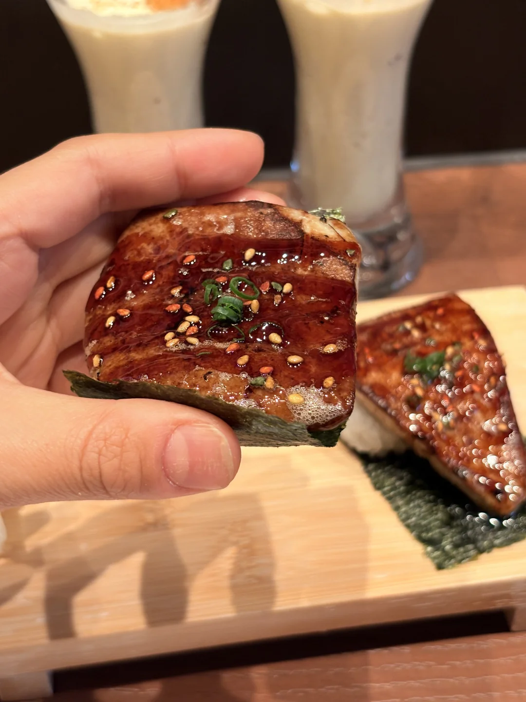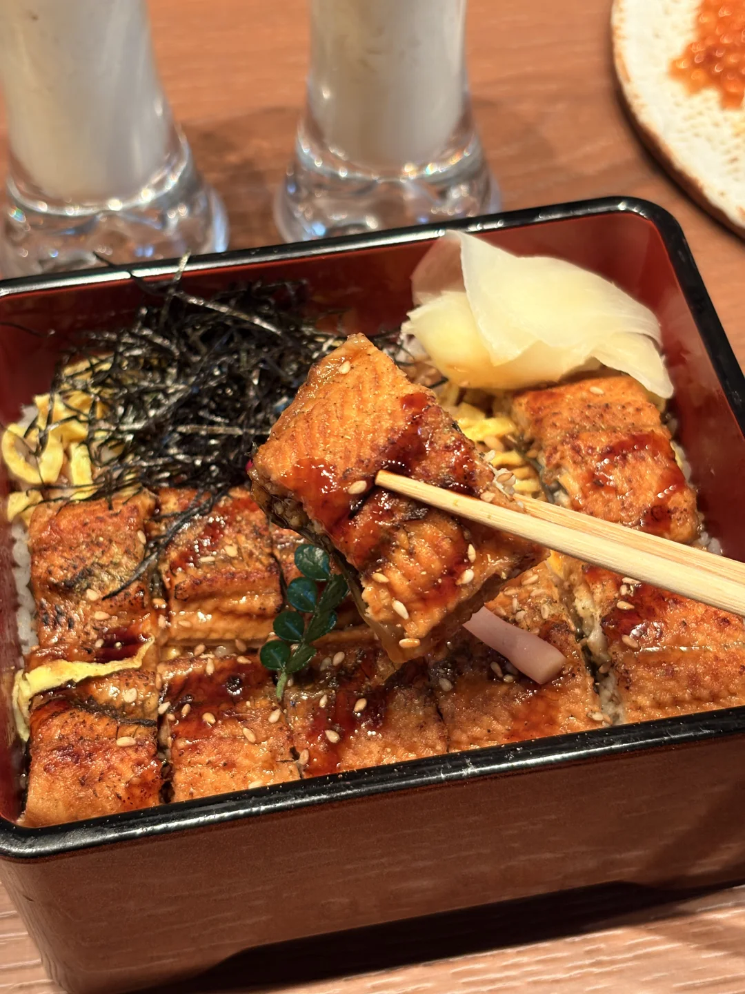 盒装也太精致了!薄薄一层醋饭+顺滑蛋丝,铺满软糯鳗鱼,淋上浓郁照烧汁,每一口都超入味~
