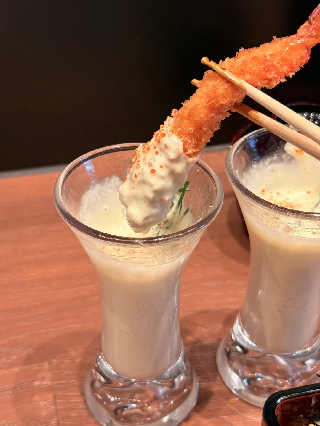 炸虾面衣超薄超脆,虾肉Q弹,裹上酸甜塔塔酱,底下混着爽脆包菜丝,好吃不腻😋