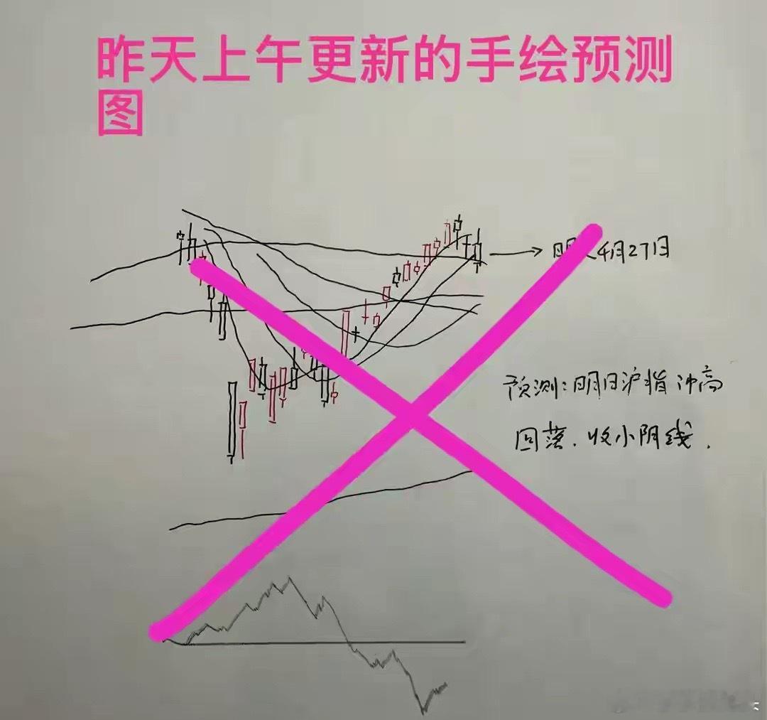 关于明天走势的手绘预测图,我将会在稍晚一点更新。以上观点仅代表个人见解,不代表任何投资建议。股市有风险,入市需谨慎。