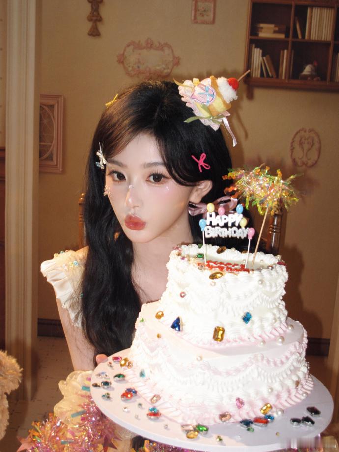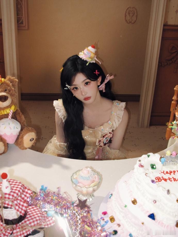 孔雪儿头顶小蛋糕、孔雪儿说要分大家吃小蛋糕 孔雪儿化身甜美小蛋糕,头顶造型精致可爱,还不忘分享给大家,治愈感满满。