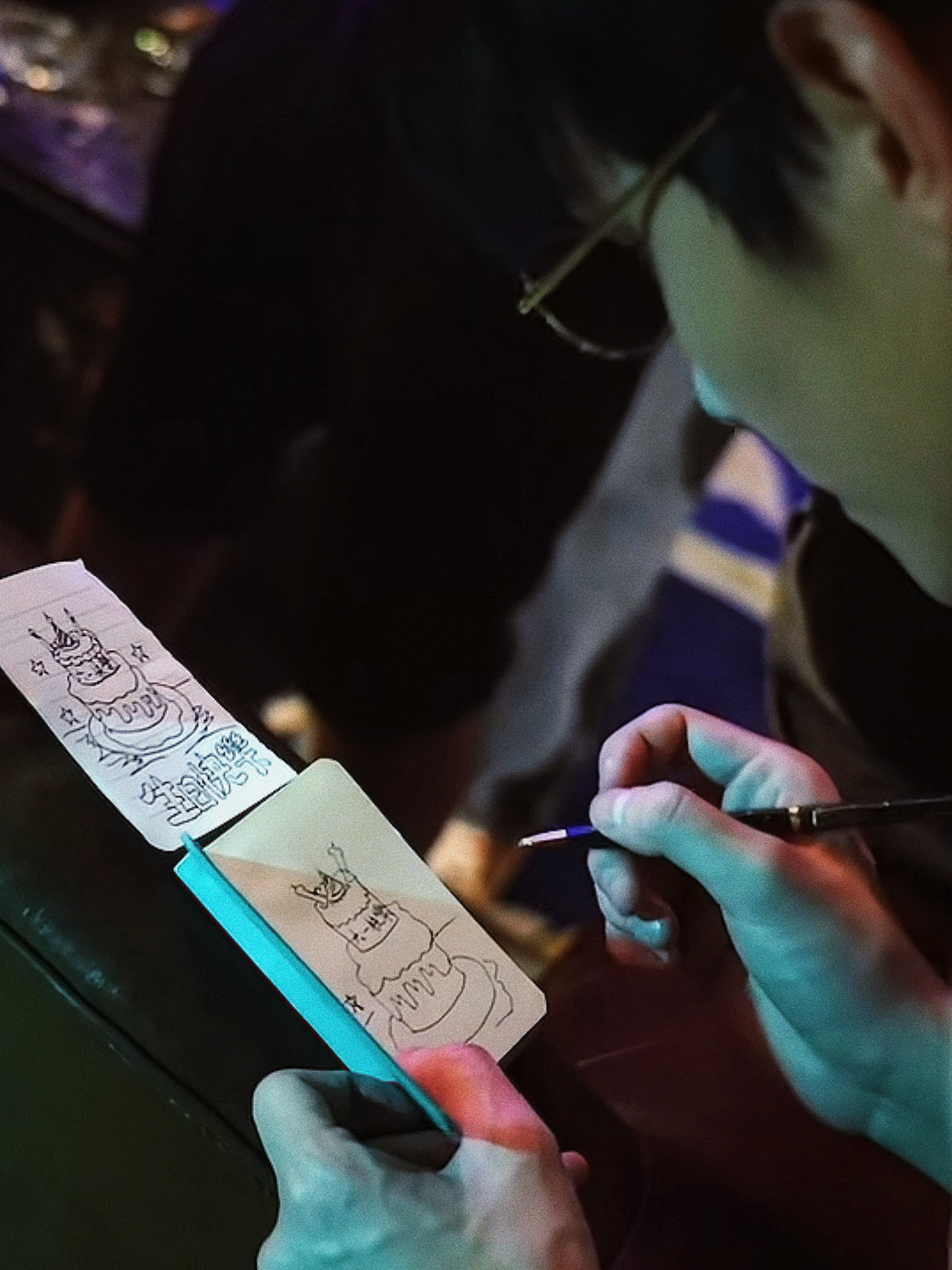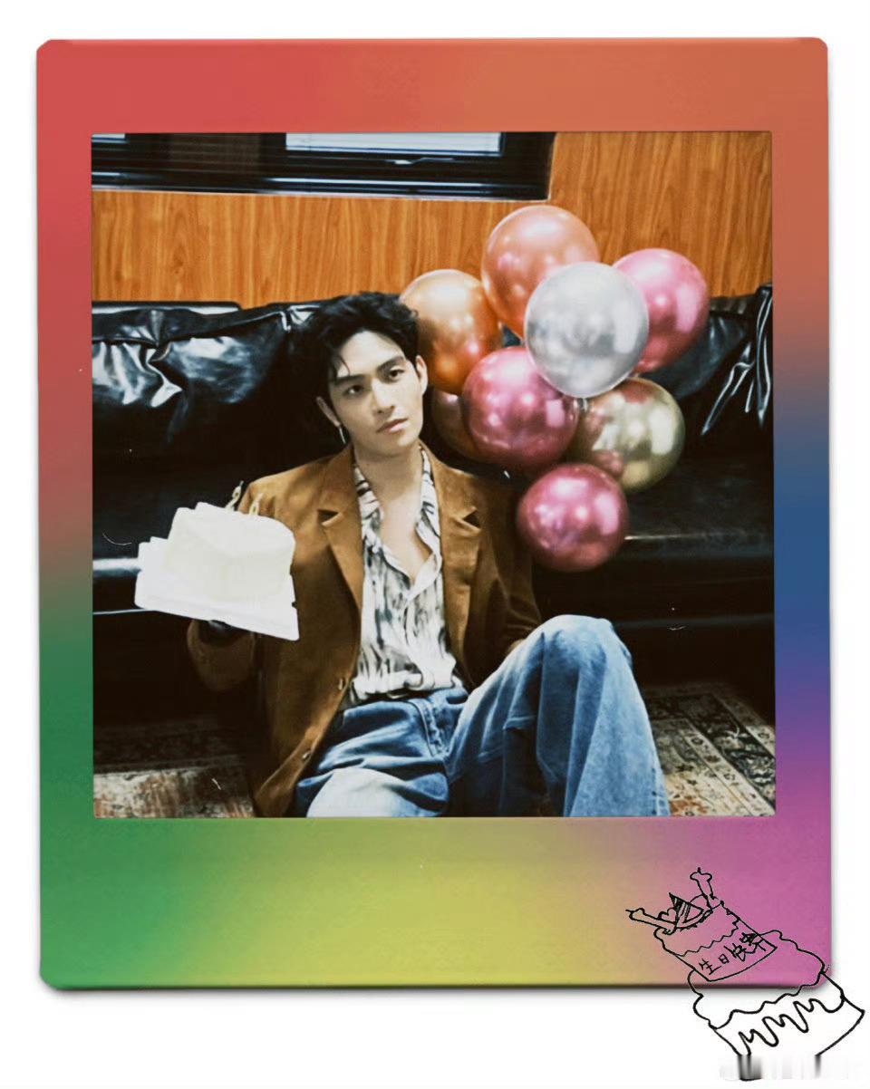 穿着六一的妆造拍的生日照右下角是初三画的小蛋糕(看着很像 但应该是重新画的 蛋糕底部不一样 剧里的“六一快乐”变成了“生日快乐”)