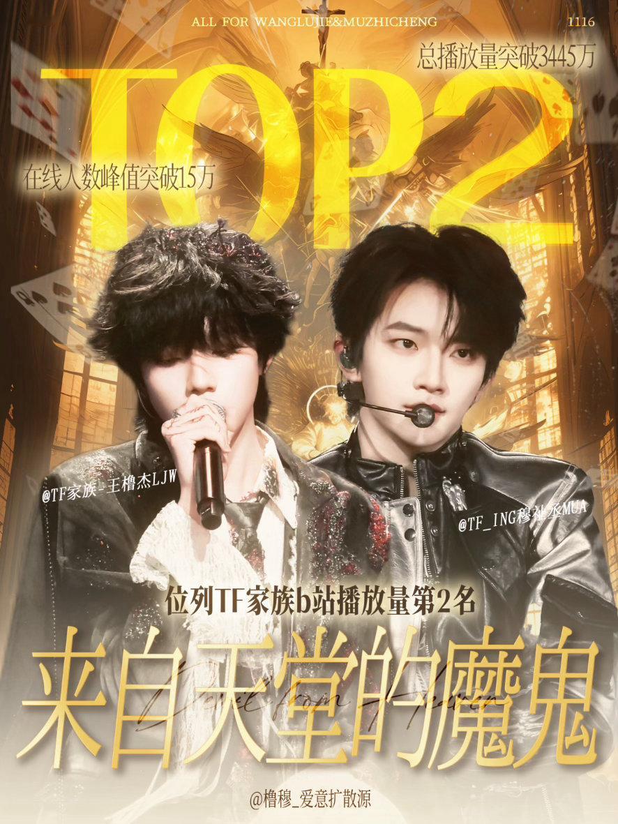 王橹杰穆祉丞双人舞台时代峰峻第二 恭喜橹穆《来自天堂的魔鬼》短时间内突破官号播放