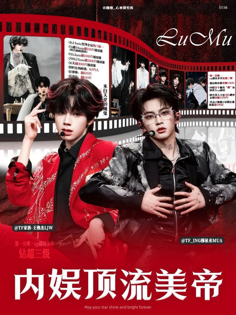 王橹杰穆祉丞双人舞台时代峰峻第二 恭喜橹穆《来自天堂的魔鬼》短时间内突破官号播放量第二!!超级顶流美帝的实力橹穆舞台播放量时代峰峻第二