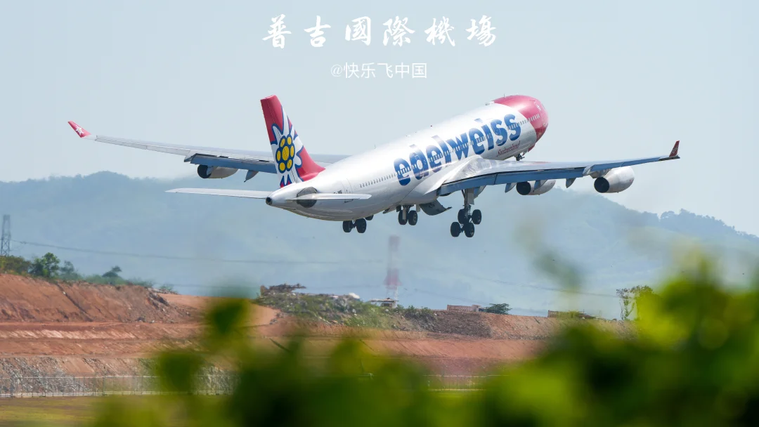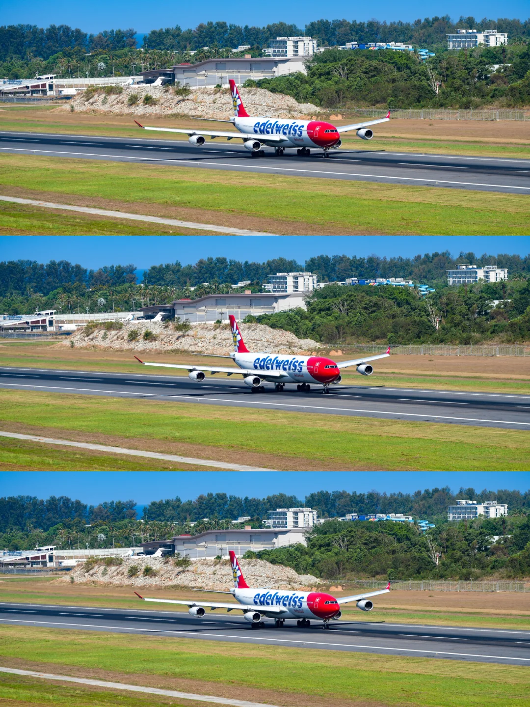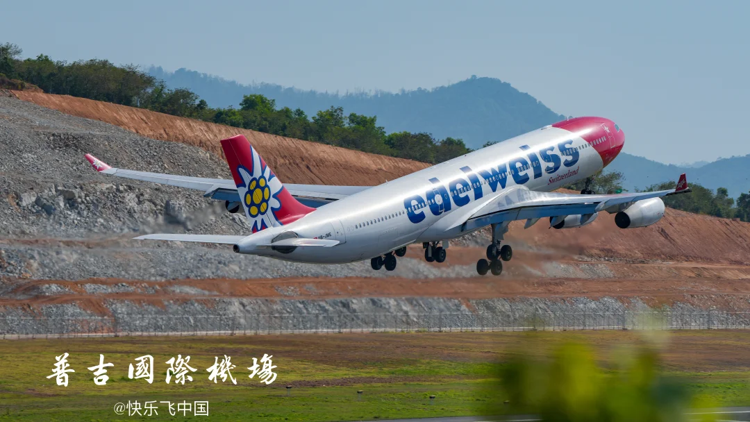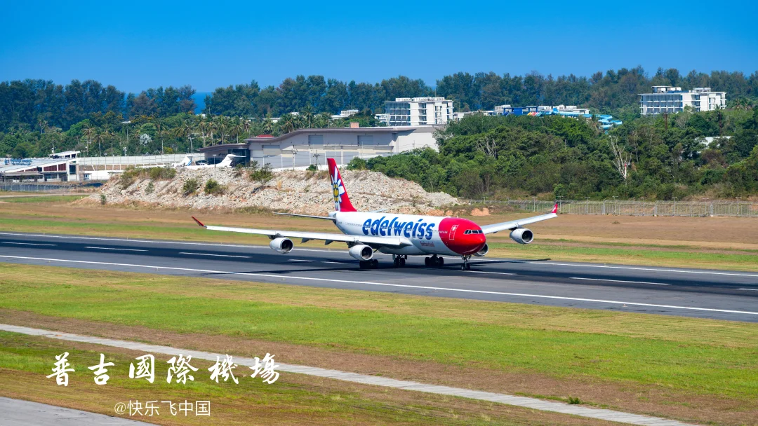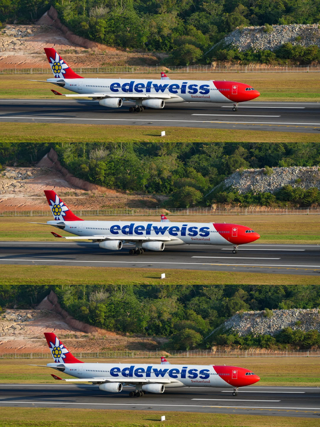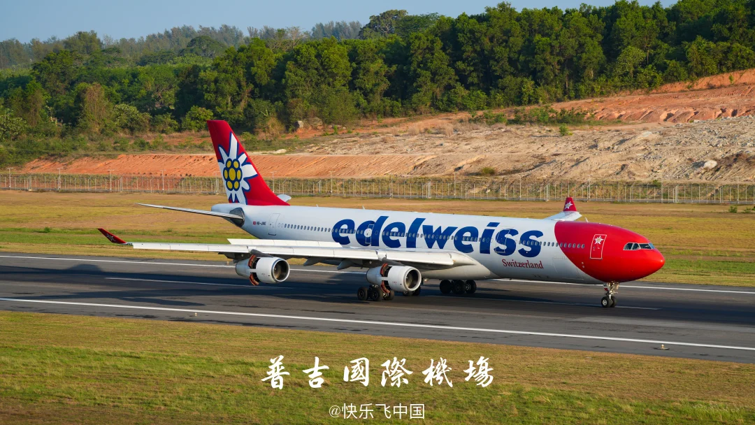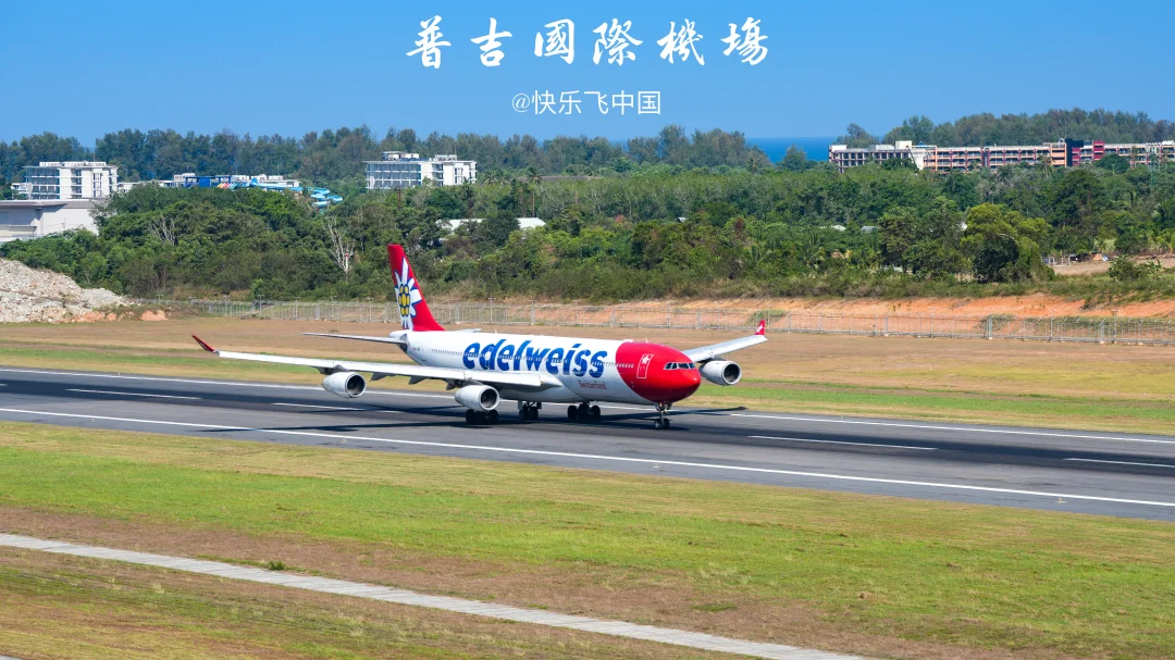 品牌标识最明显,机身上蓝色字体edelweiss,机舱门上各有一朵雪绒花,飞机尾垂上也各有一朵