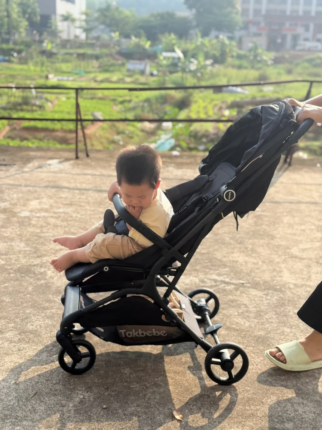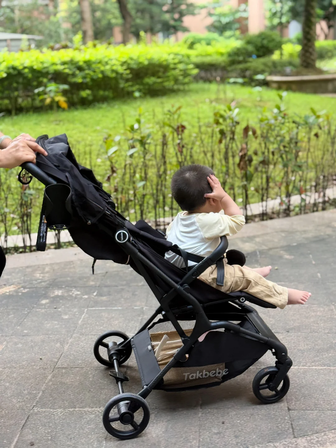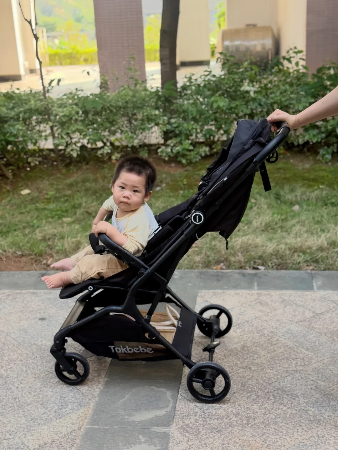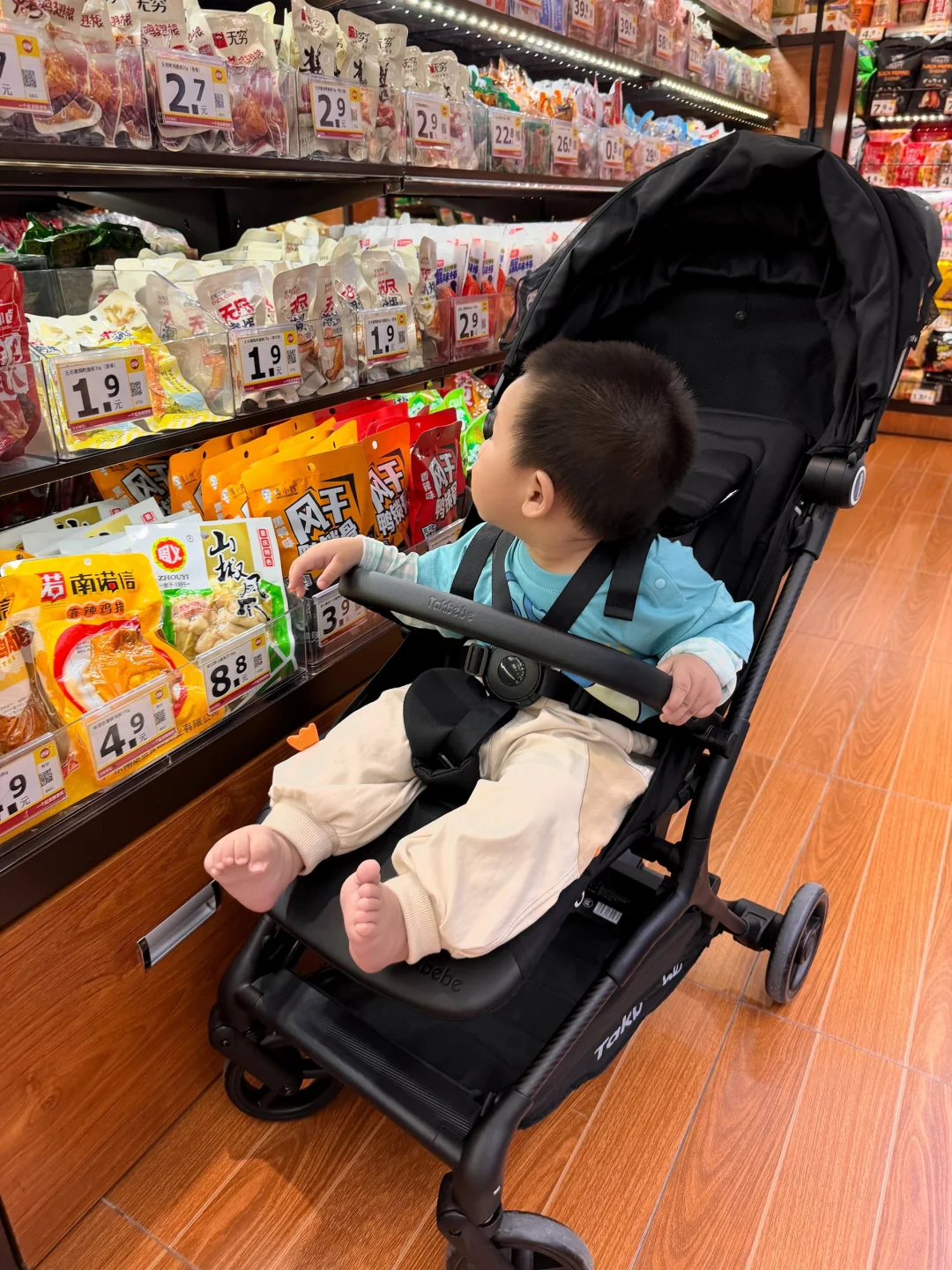 今天推着塔克贝贝的推车去逛了超市、小区楼下、还有后街的小巷子,