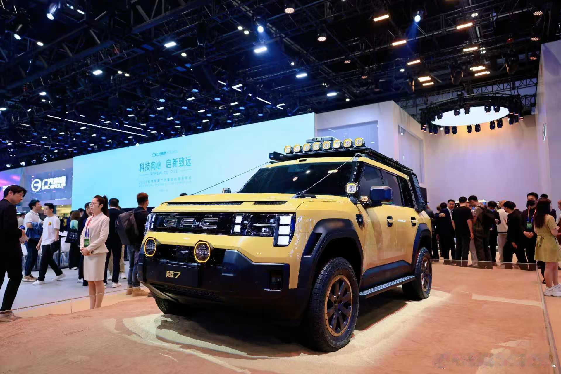 足足逛了一整天的北京车展,大大小小展馆挨个走完,各种新能源轿车、城市SUV看得眼花缭乱。走到传祺展台时,直接被现场热闹的氛围吸引住。广汽传祺越7展台直接围得里三层外三层,挤都挤不进去。好不容易钻到前排,第一眼就被方盒子硬派造型拿捏了,方正大气的方盒子造型,硬派又耐看,整体气场沉稳厚重,完全担得起“大湾区卫士”的称号。还有不少外籍游客围着车身拍照观察,认真了解这款中国硬派新车。广汽传祺越7搭载一体化嵌入式大梁 + 空气悬架 + 三把锁,越野底子拉满;原厂还预留了超多改装接口、线束和取电位,后期改车顶平台、侧帐、射灯都超方便。新车预计三季度正式上市,现阶段仅是新车首发亮相,就收获了大量关注度,让人格外期待正式发售。北京车展让让哥看车名场面传祺越7全球首发亮相大湾区卫士