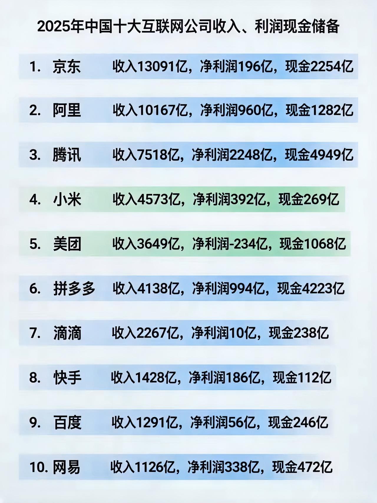 2025年中国十大互联网企业收入、利润及现金储备。 2025年最赚钱的互联网
