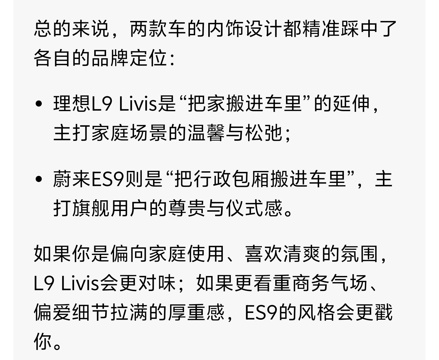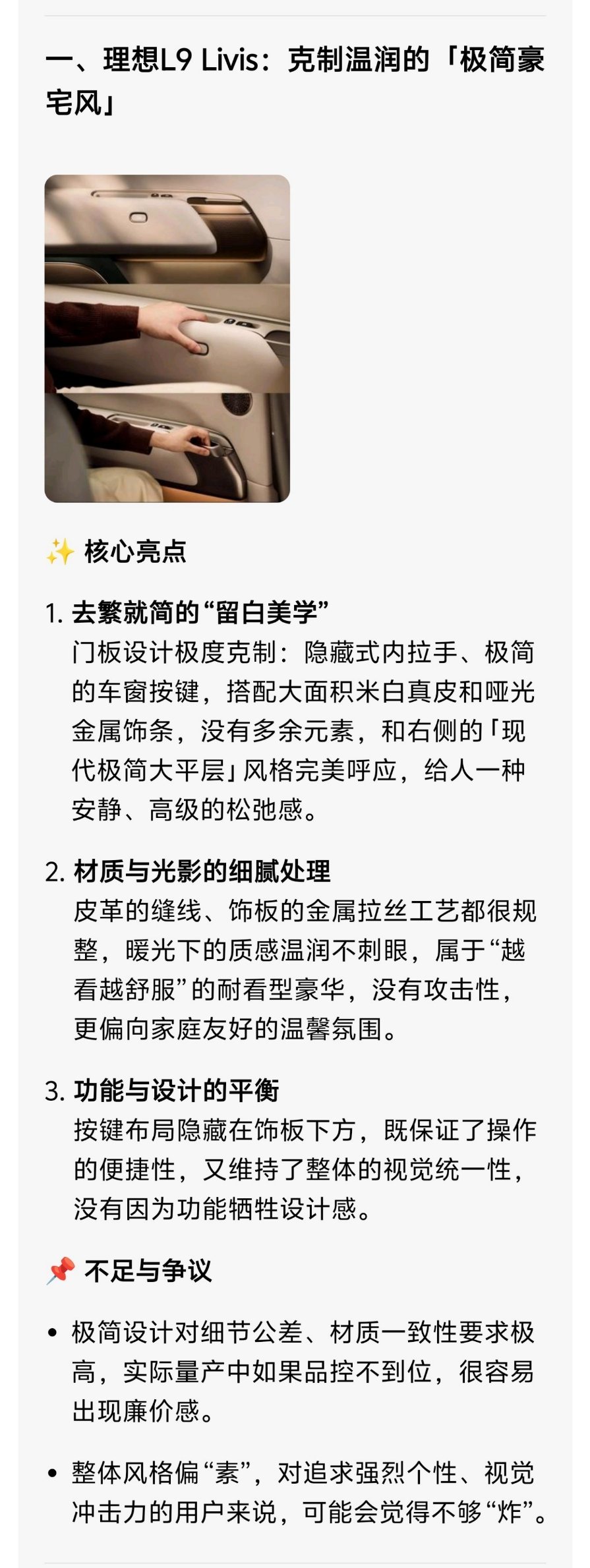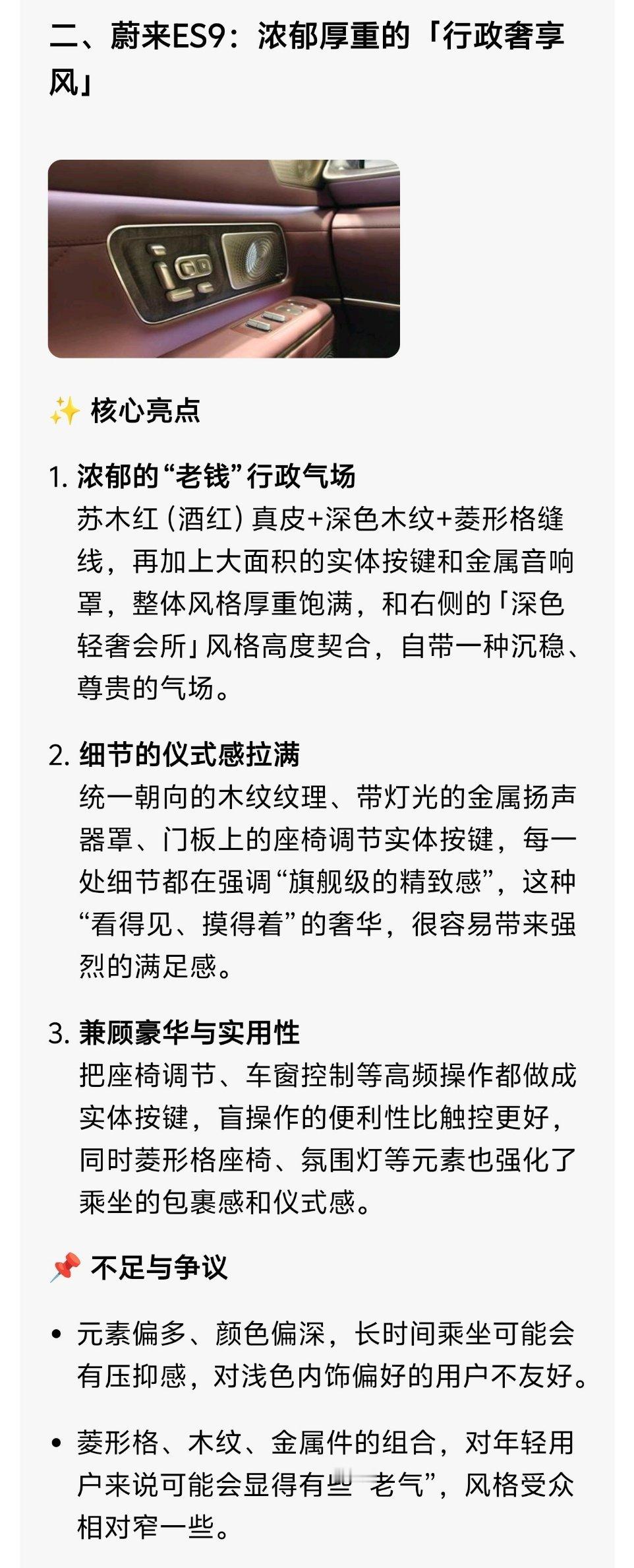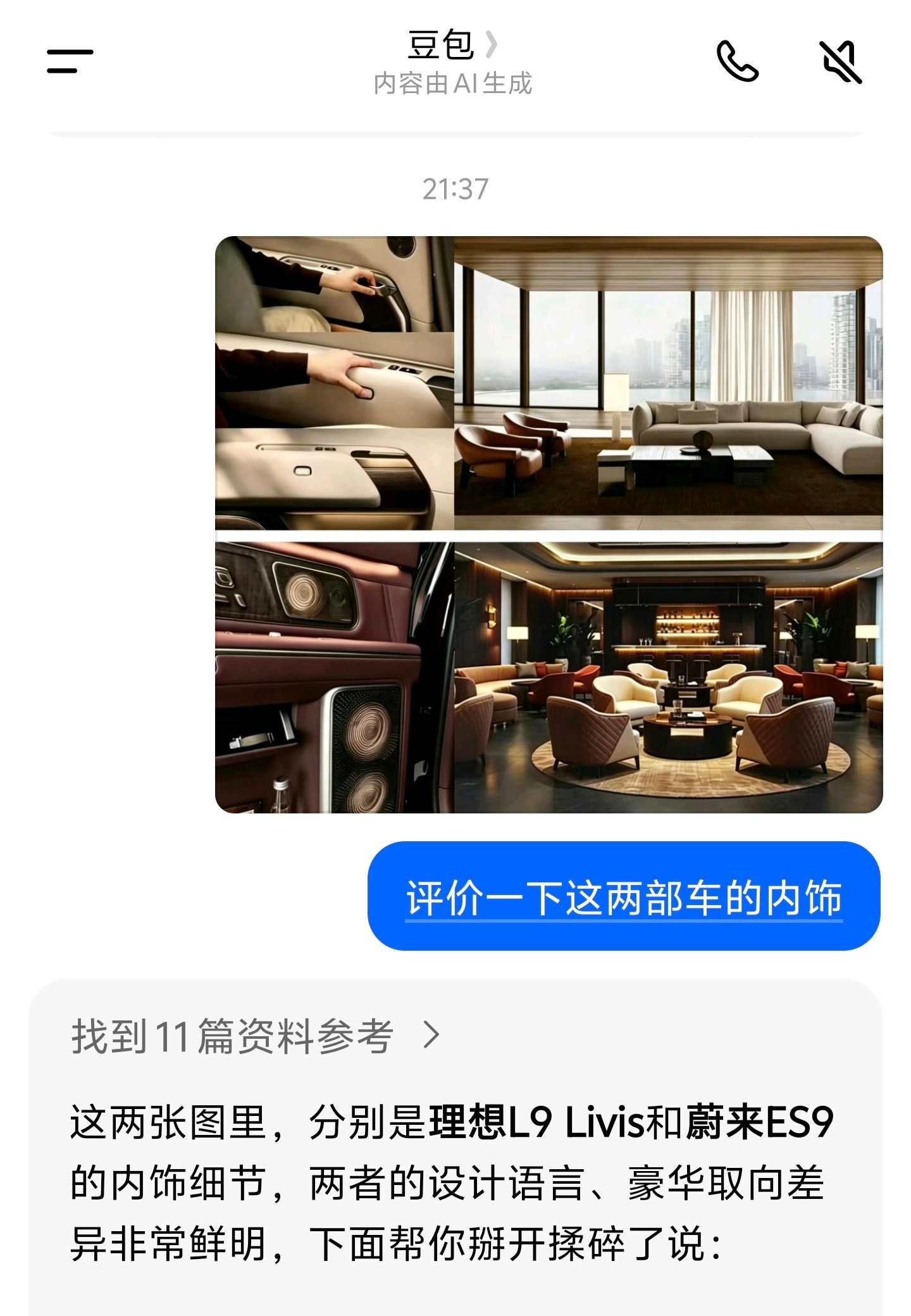 我把L9 Livis和ES9的内饰图发给了豆包,来看看它怎么评价吧。