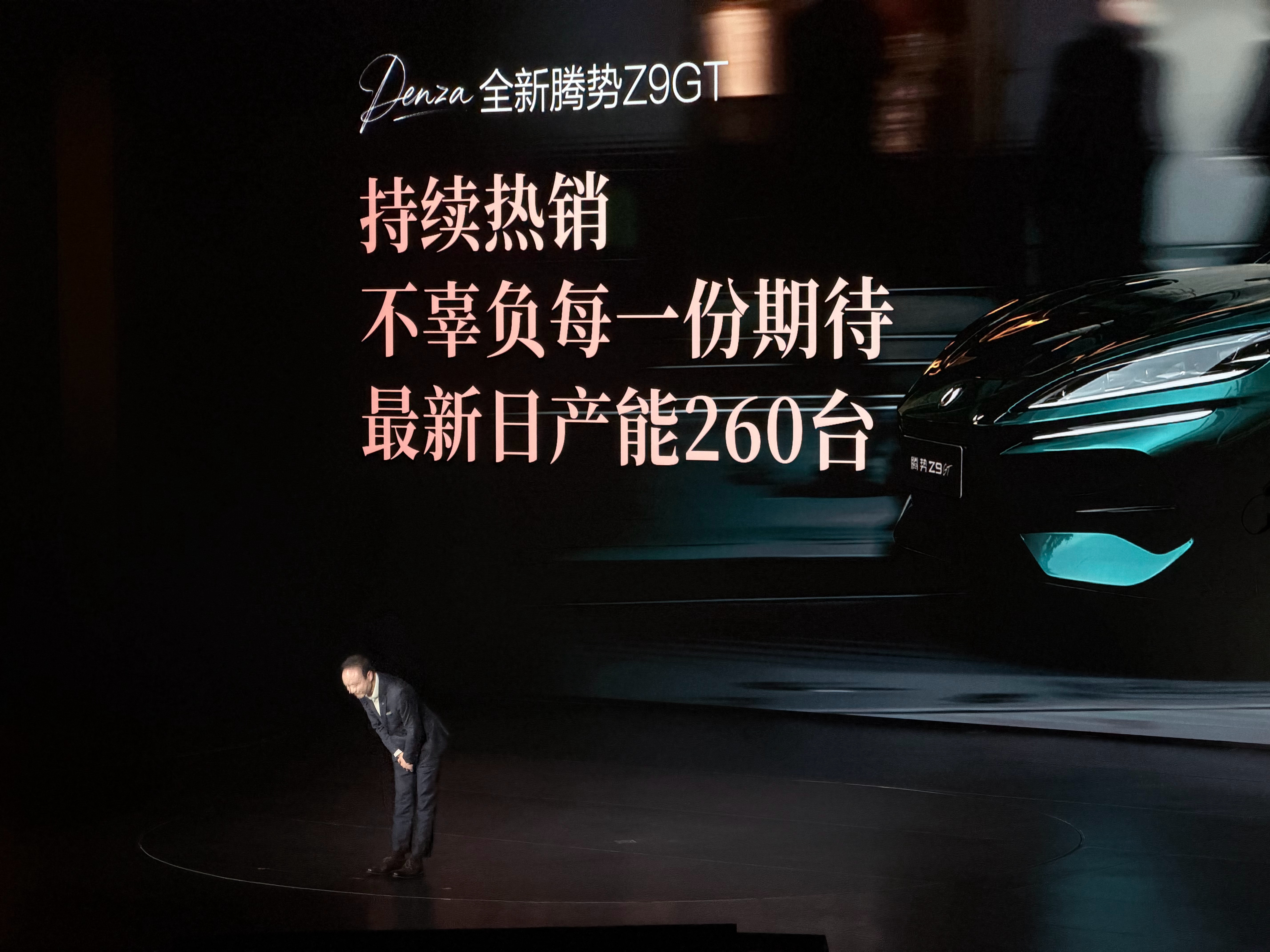 腾势Z9gt订单非常乐观,但初期因为二代刀产能问题,交付速度比较慢慧总现场鞠躬致