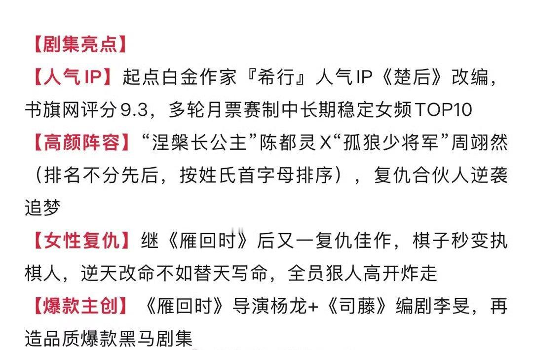 陈都灵、周翊然《翘楚》开启播前招商,预计第二季度在优酷播出