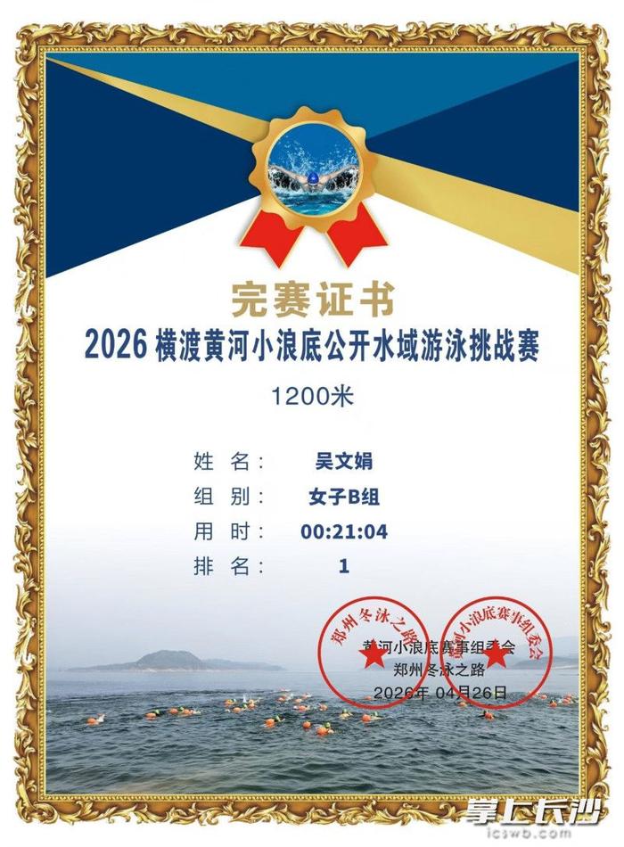 河南济源黄河边,2026横渡黄河比赛刚结束。领奖台上站着位61岁大姐,叫吴文娟,来自长沙。女子B组比赛,她游出21分4秒,优势明显,拿了第一。全场目光都聚焦在这位“高龄女将”身上。
