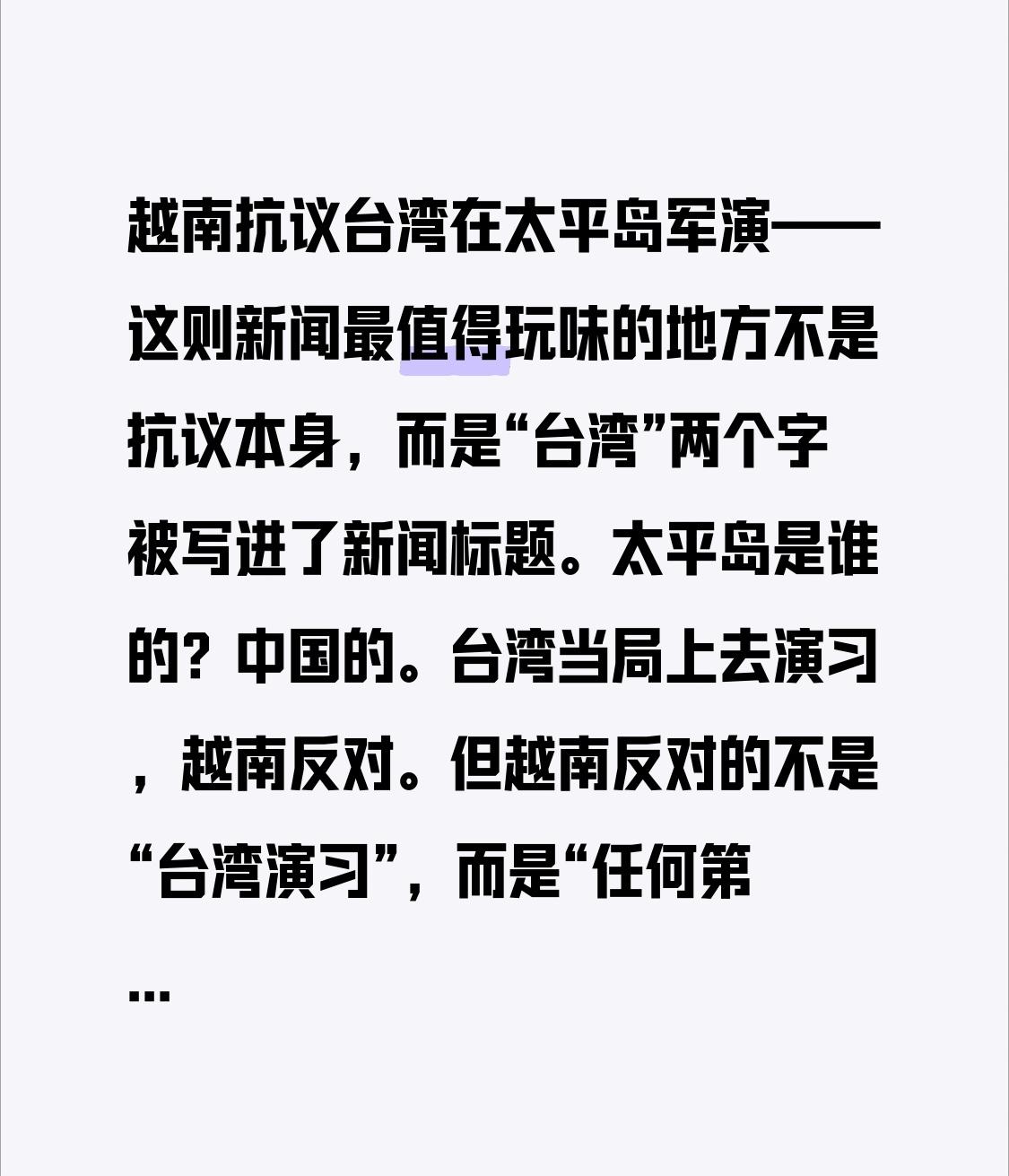 越南抗议台湾在太平岛军演——这则新闻最值得玩味的地方不是抗议本身,而是“台湾”两个字被写进了新闻标题。