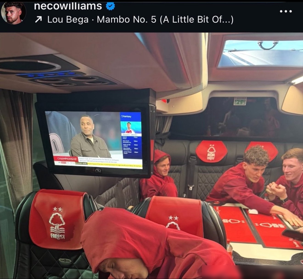 诺丁汉森林大巴上炸锅了!电视里正放着队友转会曼城,球员直接拿手机怼脸拍...