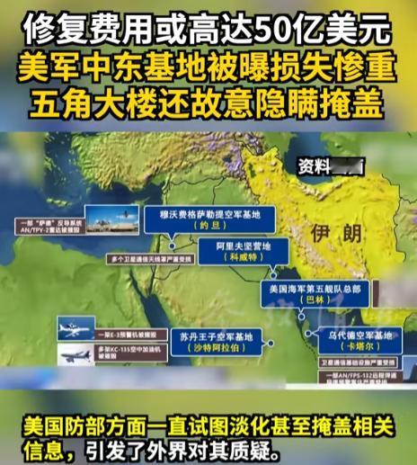 信源:参考消息《修复费用或高达50亿美元 美军中东基地被曝损失惨重 五角大楼还故意隐瞒掩盖》
