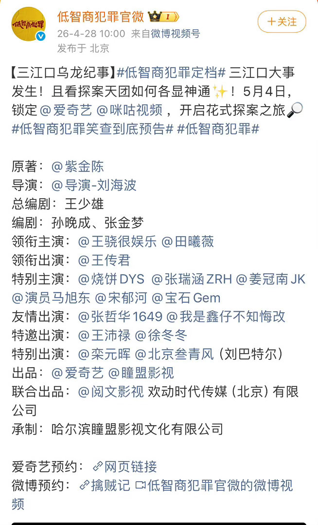 低智商犯罪特邀出演徐冬冬低智商犯罪有徐冬冬 徐冬冬演《低智商犯罪》?这组合有点意