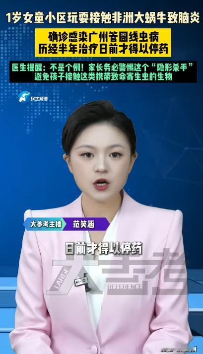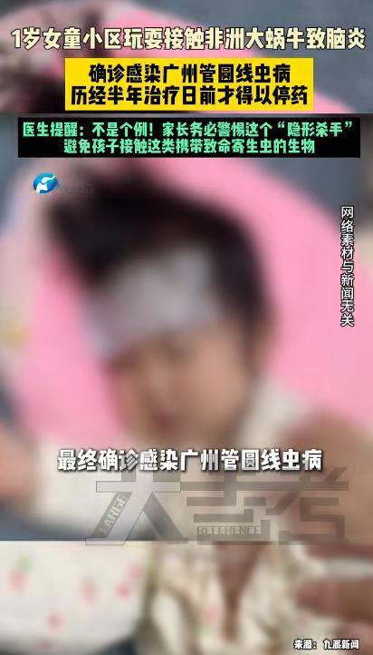 警惕致命隐患!路边非洲大蜗牛切勿随意触碰。一名一岁女童玩耍时接触该蜗牛,不幸感染广州管圆线虫病,诱发重症脑炎、持续高烧,耗费半年治疗才停药,还需长期复查。此类蜗牛自带大量寄生虫,病例多发,遍布小区路边,家长一定要看管好孩子,杜绝接触。